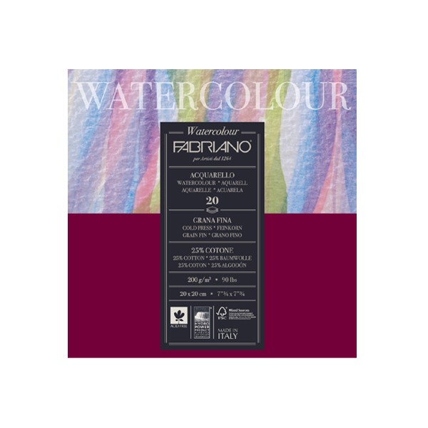 Акварельная бумага серии "Watercolour" от FABRIANO (Италия) ценится за исключительное соотношение цена/качество. Эта бумага популярна и у профессиональных художников, и у тех, кто только делает первые шаги в изобразительном искусстве. Бумага серии "Watercolour" делается из смеси высококачественной целлюлозы и 25% натурального отборного хлопка. Она не содержит кислот, что гарантирует сохранность яркости красок на долгое время. Имеет особую пропитку, обеспечивающую чётко выверенную степень поглощения пигментов. Высокая плотность и прочность делает акварельную бумагу "Watercolour" от FABRIANO устойчивой к многократным правкам работы. Цвет бумаги - белый. Фактура - мелкозернистая. Идеально подойдет для акварели, гуаши, акрила, темперы, чернил, угля и других подобных материалов.