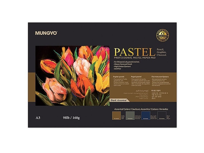 Альбом для пастели MUNGYO DARK 160 гр, А3, кофейный 4 листа, антрацитовый 4 листа, темно синий 4 листа, черный 8 листов. Всего 20 листов.
