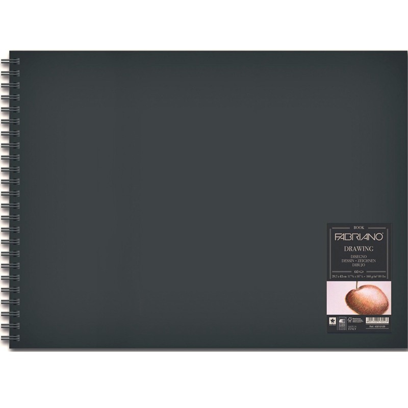 Блокноты "Drawing Book" от Fabriano это - практичные блокноты в твердых моющихся черных обложках, имеющих фактуру "холст". Плотность обложек позволяет рисовать "на весу". Бумага, содержащаяся в блокнотах, производится из высококачественной целлюлозы без добавления кислот и хлорных отбеливателей. Цвет бумаги - неяркий белый. Бумага имеет легкую зернистую фактуру. Зерно - не слишком гладкое, но и не слишком заметное, что дает нейтральную и тонкую поверхность, которая отлично подойдет для эскизов и рисунков в "сухих техниках". Идеально для карандашей, пастели, угля, сангины, мелков, туши, чернил, а также для гуаши и темперы.