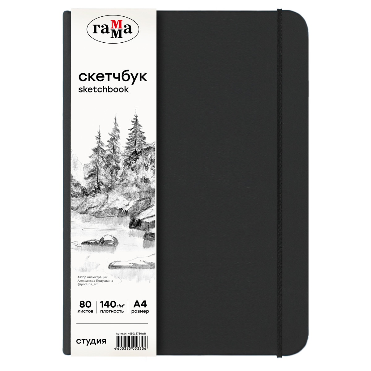Скетчбук ГАММА серии "Студия" - идеален для эскизов, набросков, скетчинга, записей. Подойдет и профессионалам, и новичкам. Жесткая обложка, с приятной на ощупь поверхностью "soft touch", обеспечивает удобство зарисовок на прогулке или в путешествии. Закладка-ляссе помогает быстро открыть скетчбук на нужной странице, а эластичная резинка фиксирует обложку и обеспечивает сохранность листов. Внутренний блок из 80 листов выполнен из высококачественной бумаги белого цвета плотностью 140г/м2. Походит для рисования разными материалами, такими как: карандаши, линеры, пастель, графит, ручки и пр.