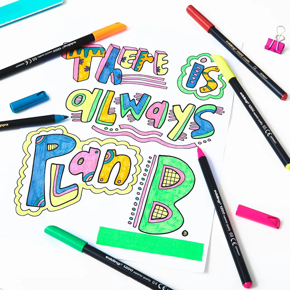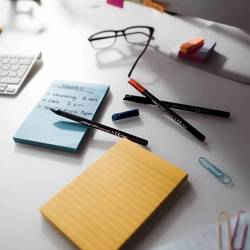 Тонкий фломастер edding 1200 снабжен округлым наконечником толщиной 1 мм. Чернила этого фломастера изготовлены на водной основе и отличаются светостойкостью, помогая получить на бумаге или картоне светлых тонов долговечные результаты.