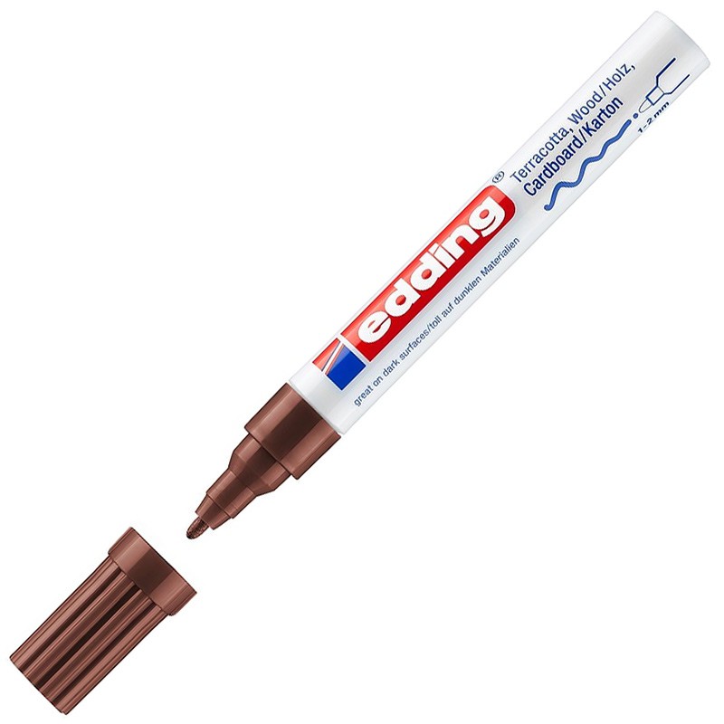 С матовым лаковым маркером "edding 4040" письмо, рисование и создание декора на пористых поверхностях не представляет никакой проблемы. Маркер прекрасно подходит для терракоты, древесины, холста, картона и подобных материалов. Его полуматовые чернила превосходно ложатся на изделия ручной работы, например, на горшки для цветов, небольшие предметы мебели или декоративные подносы. Чернила подходят даже для очень впитывающих материалов, таких как обои, шероховатые оштукатуренные стены, кожа, и отличаются стойкостью как к воздействию воды, так и к стиранию. Маркер обеспечивает долговечное покрытие при использовании как внутри помещений, так и на улице. Ширина штриха округлого наконечника составляет 1-2 мм. Цвет - коричневый. Размеры маркера - 14.3 x 1.8 x 1.8 см.