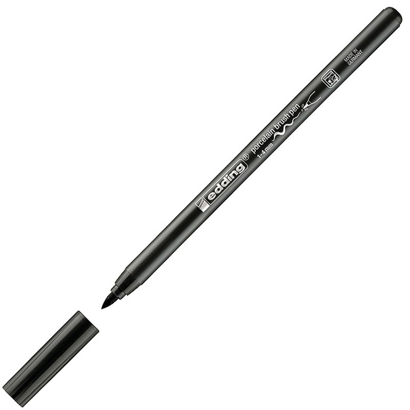 Ручки-кисти "edding 4200", с наконечниками в виде заостренной синтетической кисти, предназначены для декоративной росписи фарфора, глазурованной керамики и термостойкого стекла. После термофиксации в обычной духовке декорированные изделия можно мыть в посудомоечной машине (температура до 50 градусов). Гибкий кистеобразный наконечник идеально приспособлен как для росписи больших участков, так и для прорисовки мелких деталей. Ручка-кисть обеспечивает прекрасное плавное нанесение цвета и создание равномерных заливок без образования потёков или пробелов. Маркеры наполнены светостойкими пигментными чернилами на водной основе. Чернила сохнут быстро, но позволяют вносить изменения в дизайн вплоть до момента термофиксации. Перед декорированием необходимо тщательно вымыть и обезжирить изделие. Создавая роспись, убедитесь, что в том месте, на которое вы намереваетесь нанести чернила, нет отпечатков пальцев. Дайте изделию высохнуть в течение 15 минут, а затем поместите его в духовку, предварительно разогретую до 160 градусов, и обжигайте в течение 25 минут; оставьте изделие в духовке до полного остывания. Используйте ручку-кисть только для декоративных целей. Не расписывайте ею участки фарфора, которые могут подвергаться воздействию столовых приборов или других предметов сервировки. Например, наносите узоры только по кромке тарелки или на внешнюю сторону кружки. Цвет ручки-кисти - черный. Размер - 16.5 x 1.1 x 1.1 см. Ширина штриха составляет 1-4 мм.