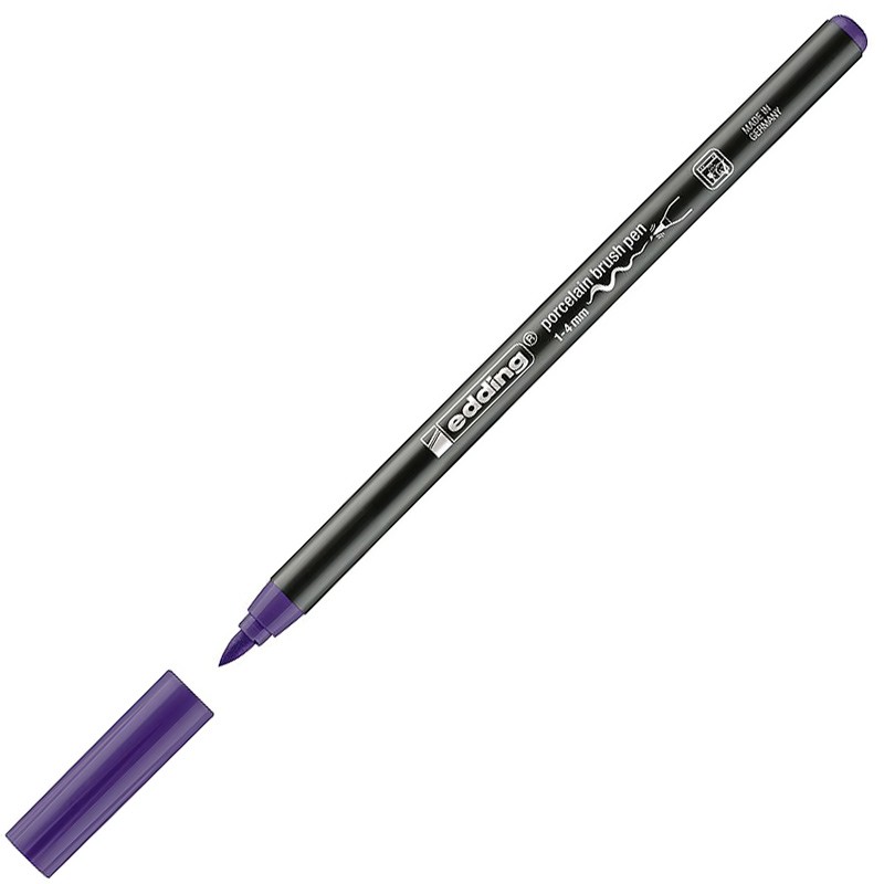 Ручки-кисти "edding 4200", с наконечниками в виде заостренной синтетической кисти, предназначены для декоративной росписи фарфора, глазурованной керамики и термостойкого стекла. После термофиксации в обычной духовке декорированные изделия можно мыть в посудомоечной машине (температура до 50 градусов). Гибкий кистеобразный наконечник идеально приспособлен как для росписи больших участков, так и для прорисовки мелких деталей. Ручка-кисть обеспечивает прекрасное плавное нанесение цвета и создание равномерных заливок без образования потёков или пробелов. Маркеры наполнены светостойкими пигментными чернилами на водной основе. Чернила сохнут быстро, но позволяют вносить изменения в дизайн вплоть до момента термофиксации. Перед декорированием необходимо тщательно вымыть и обезжирить изделие. Создавая роспись, убедитесь, что в том месте, на которое вы намереваетесь нанести чернила, нет отпечатков пальцев. Дайте изделию высохнуть в течение 15 минут, а затем поместите его в духовку, предварительно разогретую до 160 градусов, и обжигайте в течение 25 минут; оставьте изделие в духовке до полного остывания. Используйте ручку-кисть только для декоративных целей. Не расписывайте ею участки фарфора, которые могут подвергаться воздействию столовых приборов или других предметов сервировки. Например, наносите узоры только по кромке тарелки или на внешнюю сторону кружки. Цвет ручки-кисти - фиолетовый. Размер - 16.5 x 1.1 x 1.1 см. Ширина штриха составляет 1-4 мм.