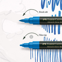 Акварельные художественные маркеры линейки "Альбрехт Дюрер" ("Albrecht Dürer") от немецкой компании Faber-Castell - это современный инструмент скетчинга и живописи. Эти маркеры хороши и для быстрых набросков, и для классических рисунков акварелью. Высококачественные чернила на водной основе отлично подходят для работ в "мокрых техниках". Не проникают сквозь обычную бумагу и дают возможность работать, например, в альбомах для рисования. При использовании плотной специализированной бумаги отлично размываются водой, позволяя создавать различные акварельные эффекты, делать гладкие переходы, смешивать цвета. Маркеры - двухсторонние и имеют два пера: скругленный "фломастерный" наконечник (1-2мм) и упругая мягкая кисть с острым кончиком. Акварельные маркеры "Альбрехт Дюрер" выделяется среди аналогов высоким содержанием пигментов и высокой светостойкостью. Оттенки соответствуют цветовой системе, созданной компанией, и поэтому прекрасно сочетаются, например, с цветными художественными карандашами от Faber-Castell.