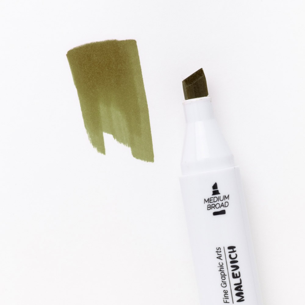 Художественные двусторонние маркеры Graf'Art Brush от компании "Малевичъ" созданы специально для скетчинга и подобных графических работ. Маркеры имеют два наконечника - "долото" и "кисть". Чернила - сделаны на спиртовой основе, но они не имеют сильного запаха. Формула этих чернил, изготовленных в Великобритании, обеспечивает создание плавного градиента и отсутствие выраженных полос. Комбинация из двух разных наконечников позволяет создавать любые штрихи, мазки и линии: широкий скошенный "долото" хорош для четких форм, а экстра-мягкая кисть (сделана в Японии), дает возможность работать маркером в живописной технике, создавая легкие мазки, растушевки и тонкие линии. Корпус из пластика белого цвета имеет в сечении овальную форму. Его удобно держать в руках, а благодаря форме, он не перекататывается по столу, сохраняя порядок на рабочем месте художника. Цветовая палитра состоит из самых востребованных чистых оттенков и подобрана так, чтобы художник мог создать и портрет, и ботаническую зарисовку, и архитектурный пейзаж. Для лучшего смешивания цветов предусмотрен специальный бесцветный маркер-блендер.