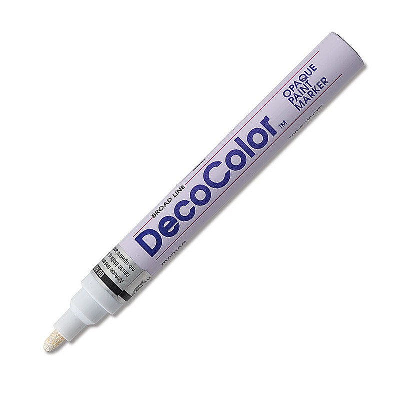 Маркер лаковый "DecoColor Broad Line" от MARVY со скругленным наконечником, дающим линии 2-4мм. Маркер пишет на любой поверхности: стекле, дереве, пластике, керамике, камне, металле. Красивые непрозрачные цвета. Свето- и водостойкие чернила с лаковым эффектом сохнут в течении нескольких секунд, не боятся атмосферных осадков. Маркер помещен в вакуумную упаковку. Перед началом работы маркер нужно встряхнуть, потом нажимать на стержень, пока на нем не проступит краска.