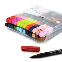Акварельные односторонние маркеры (Coloring Brush Pens) KOI от известного японского бренда Sakura. Гибкий нейлоновый наконечник "кисть" позволяет менять толщину линии за счет силы нажатия. Водные чернила на основе красителей не имеют запаха. Предназначены для иллюстраций, скетчей, технического рисунка, мультипликации, комиксов и многого другого. Для достижения наилучших результатов используйте плотную гладкую бумагу (гладкую, но без покрытия) или акварельную бумагу. Для смешивания цветов используйте бесцветный блендер. Маркеры упакованы в многоразовый пластиковый блистер с передней застежкой. В набор входят 24 маркерa следующих цветов: желтый (3), оранжевый (5), оранжевый бледный (7), коричневый древесный (407), коричневый темный (110), коричневый (12), киноварь (18), красный (19), розовый (20), красный винный (22), фуксия (222), сиреневый (123), ирис (124), пурпурный (24), небесно-голубой (125), зеленый переливчатый (426), желто-зеленый (27), зеленый (29), зеленый травяной (130), зеленый салатовый (32), синий (36), небесно-голубой светлый (237), лазурь берлинская (43), черный (49)