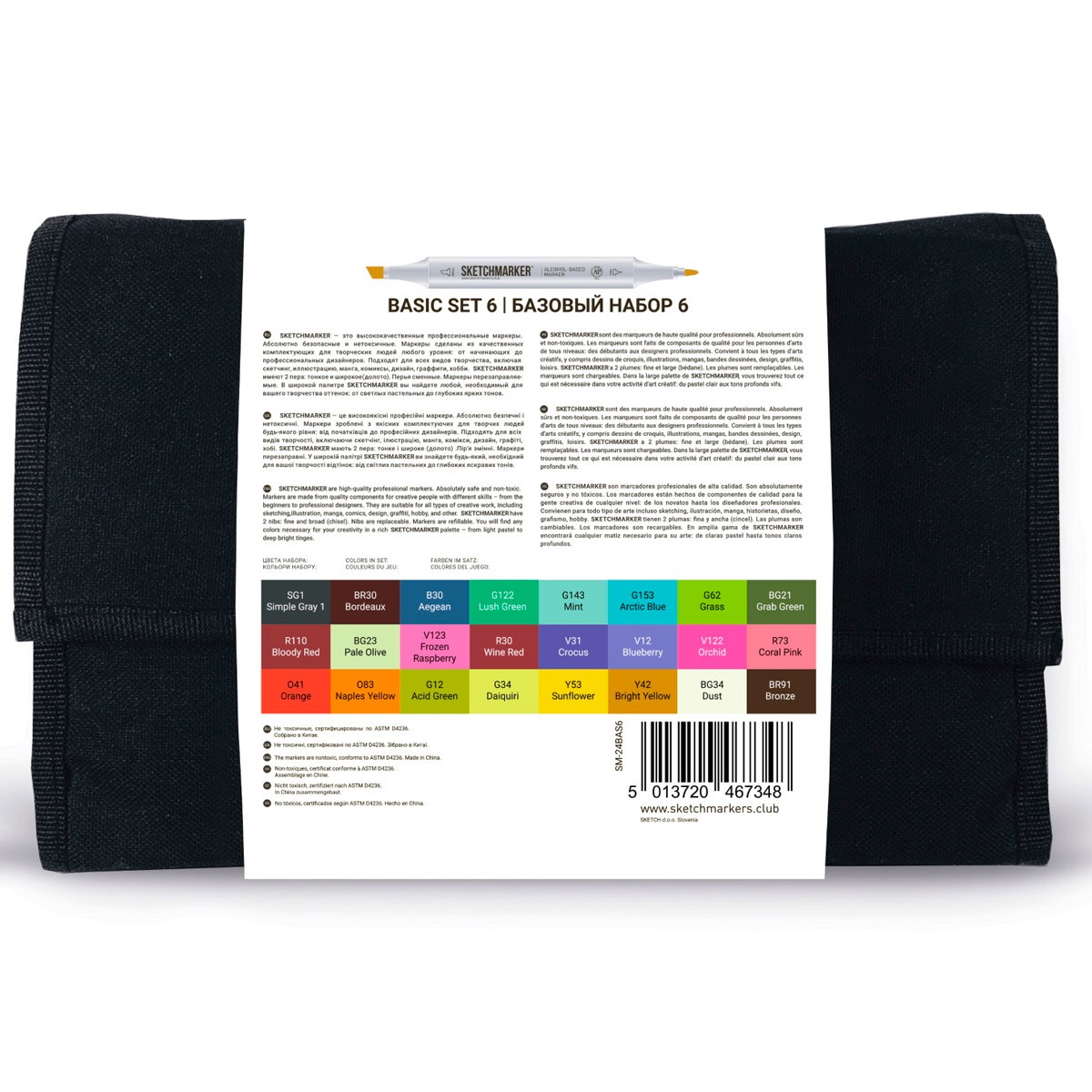 Набор маркеров упакован в прочный матерчатый органайзер. В него входят 24 цвета (см. ниже таблицу "Цвета набора").