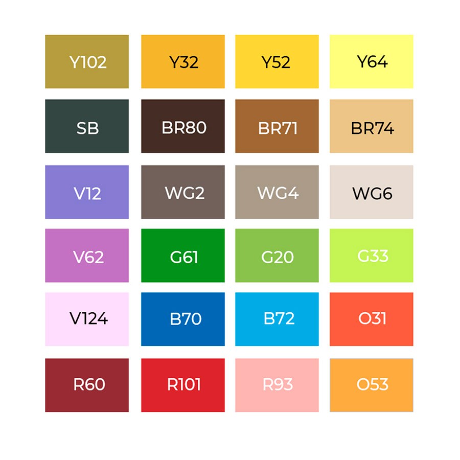 Набор маркеров упакован в прочный матерчатый органайзер. В него входят 24 цвета (см. ниже таблицу "Цвета набора").
