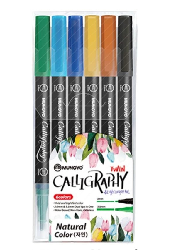 Набор маркеров для каллиграфии TWIN, 6 цветов, натуральные цвета.
