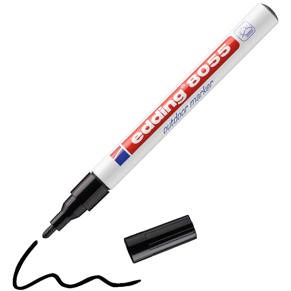 Маркер для наружных работ edding 8055, круглый наконечник, 1-2 мм, алюминиевый корпус, блистер Черный