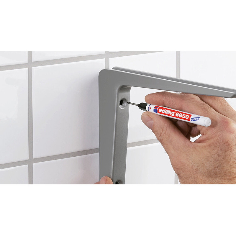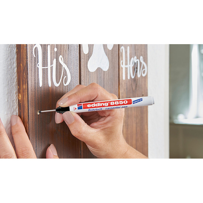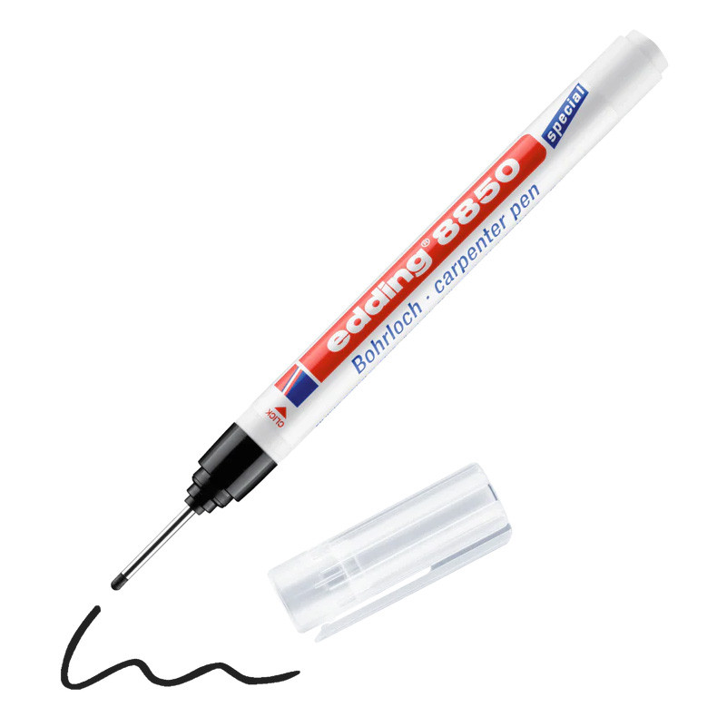 Иногда действительно сложно пометить просверленные отверстия, особенно когда другие предметы блокируют путь и делают невозможным добраться до нужных мест. К счастью, столярная ручка edding 8850 оснащена очень длинным и тонким наконечником, который высвобождает водостойкие черные чернила для точной и стойкой маркировки. Неудивительно, что его используют как плотники, так и заядлые мастера.