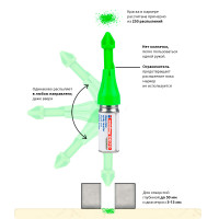 Запатентованный насосный механизм, применяемый под любым углом и на любой высоте, распыляющий зеленый мел для удобства нанесения маркировки.
