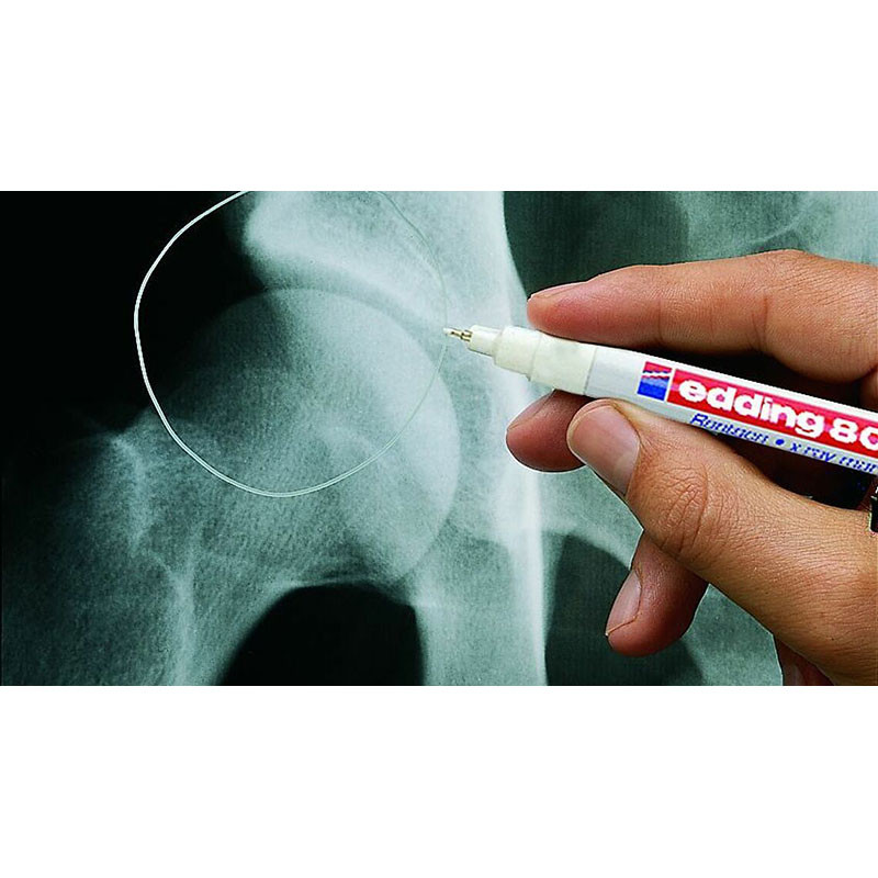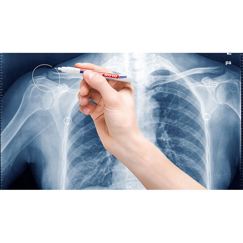 При нанесении смываемых надписей на гладкие поверхности, такие, как пластиковые папки, файлы или проекторные пленки, очень важно, чтобы надписи или маркировка не растекались и не размазывались. С не перманентным маркером-ручкой edding 151 F и его быстросохнущими чернилами подобных проблем не возникает. После нанесения надпись можно легко удалить влажной тканью.