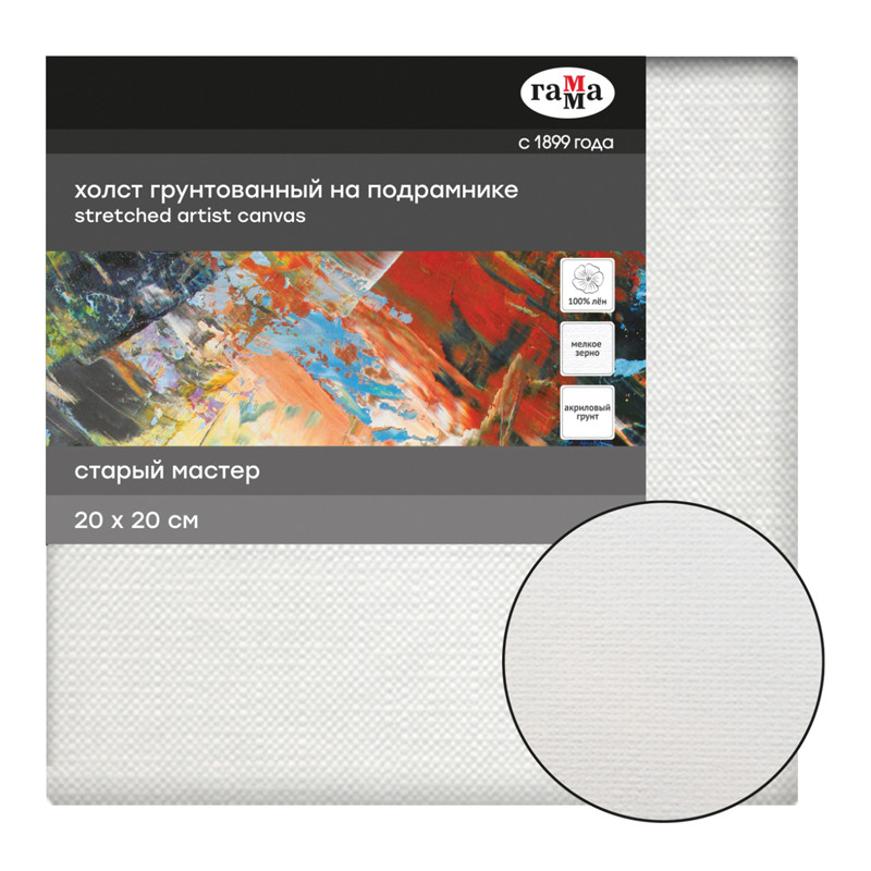 Холст на подрамнике из серии "Старый мастер" от ГАММА предназначен для профессиональной живописи. Ткань - 100% лён высокого качества. Это идеальная основа для работы масляными, акриловыми и темперными красками. Трехслойный акриловый грунт сохраняет чистоту цветов и оттенков. Плотность 370г / м2 подходит для письма, лессировки, портретов и эскизов. Модульный подрамник выполнен из натуральной сосны, клинья для натяжки холста в комплекте.