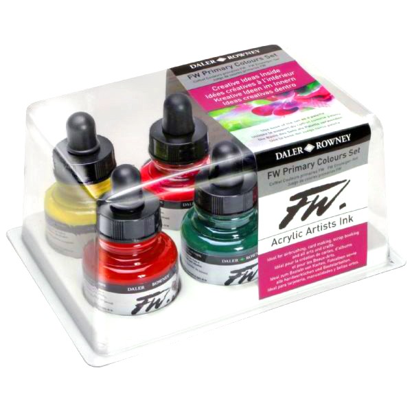 В состав набора "FW Primary Set" от "Daler-Rowney" входят 6 флаконов по 29.5мл шести основных цветов: