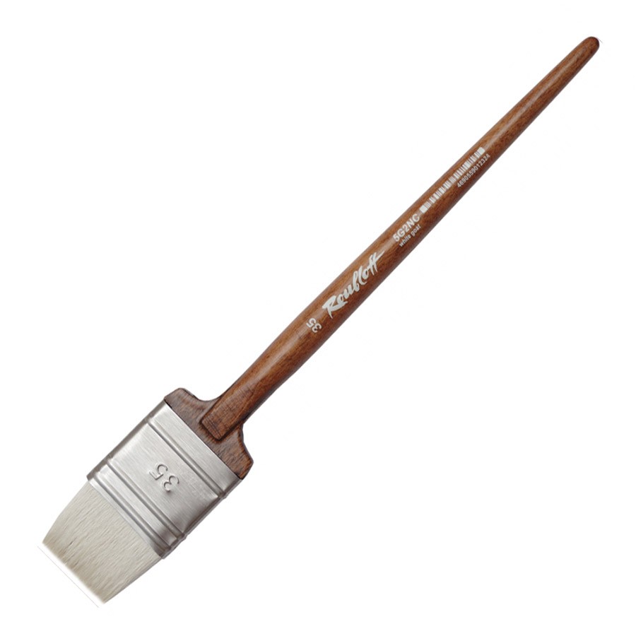 Кисть-флейц ROUBLOFF 5G25C из волоса белой козы подходит для смачивания бумаги перед живописью по-мокрому и для работы цветом в акварели. Белый цвет позволяет идентифицировать наличие и цвет краски в кисти. Гигроскопичный ворс быстро смачивается, хорошо набирает воду и равномерно отдает ее листу. Послушный и мягкий волос в сочетании с запатентованной круглой ручкой открывают перед художником новые возможности в реализации его творческих замыслов, создании изящных мазков и заливок. Долговечная обойма кисти выполнена из нержавеющей стали.