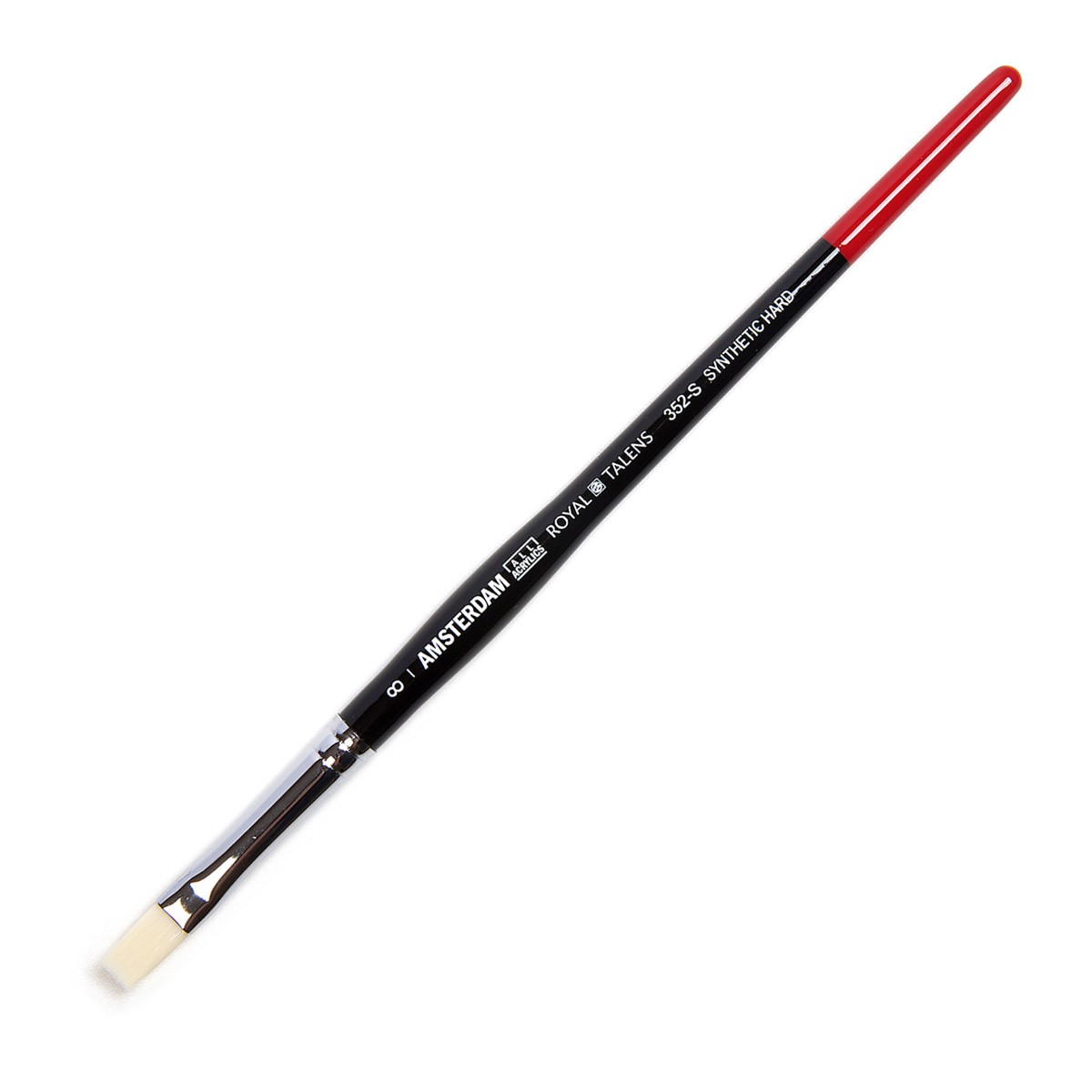 Кисти "Амстердам" от голландской компании Royal Talens для акрила изготовлены ​​из синтетической "щетины" отличного качества. Кисти идеально подходят для акрила, поскольку их упругость и жесткость прекрасно сочетаются с пастообразным характером этих красок, позволяя набирать большое количество акрила за один раз. Волос кистей - необыкновенно долговечный, имеет четкий собранный кончик для точных мазков, сохраняет форму, стоек к растворителям. Белый цвет "щетинок" дает возможность контролировать оттенок, набираемой краски. Кисти также подходят для масляной живописи и для других художественных работ. Высококачественная обойма изготовлена из никелированной латуни. Ручка - деревянная, лакированная, цвет - черный глянцевый с красным.