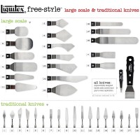 Износостойкие высококачественные профессиональные мастихины Freestyle от Liquitex изготовлены из прочной, устойчивой к коррозии, нержавеющей стали. Лезвия имеют оптимальную упругость и идеально подходят для смешивания и нанесения густой краски, грунта, текстурных паст и подобных им материалов. Лезвия большего размера, для прочности при работе с большой массой краски, дополнительно проклёпаны. Эргономичные ручки улучшают захват и обеспечивают комфорт при длительном использовании.