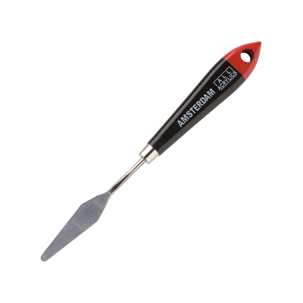 Мастихины серии "Amsterdam" от голландской компании Royal Talens произведены из высококачественной нержавеющей стали. Мастихины предназначены для работы с акриловыми и масляными красками, грунтами, пастами для моделирования и медиумами. Ручка - деревянная, лакированная, цвет - черный глянцевый с красным. Длина ножа: 9,6см. Общая длина мастихина с ручкой: 20,8см.