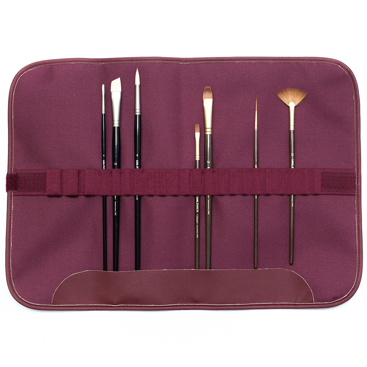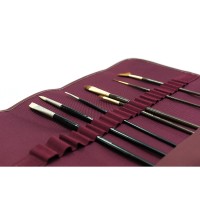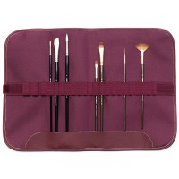 Скрутка (пенал) для кистей авторской конструкции. Скрутка выполнена из полиэстера бордового цвета. Внутри вшита эластичная резинка удерживающая кисти на своем месте. Предусмотрено три ячейки для мастихинов. Специальная вставка из искуственной кожи предохраняет ворс кистей от деформации. Материал - износостойкий и не боится воды. Конструкция позволяет зафиксировать скрутку при любой толщине в зависимости от количества кистей внутри. Это удобный и практичный аксессуар для переноски и хранения кистей, который радует стильным дизайном. Предназначен для кистей на средней и длинной ручке.