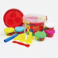 Масса для лепки Giotto be-be Super Modelling Dough имеет отличные пластичные свойства, не засыхает и не затвердевает при работе. На воздухе масса постепенно затвердевает, но может быть снова размягчена водой и использована. Цвета хорошо смешиваются между собой. Помогает развивать мелкую моторику рук, цветовое восприятие и фантазию. Только натуральные компоненты: пищевые красители, кукурузный крахмал, мука. Легко отчищается с одежды простой щёткой после высыхания. В наборе: 5 цветов в баночках по 100г, скалка, 1 нож и 3 аксессуара для моделирования.