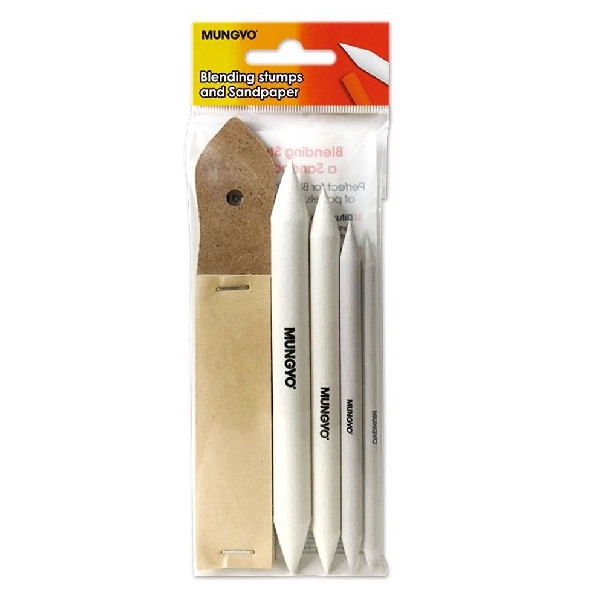 Набор MUNGYO для художественных работ: растушевки 4 шт + наждачная бумага для заточки карандашей