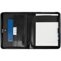 Деловая папка для документов формата А4 из искусственной кожи. Папка создана в лаконичном дизайне без ручек, закрывается на молнию. Внутри отделение для документов формата А4, закрывающееся на клапан с кнопкой, отделения для визиток, крепление для ручки, блокнот формата А4 в комплекте. Размер 345х275мм.