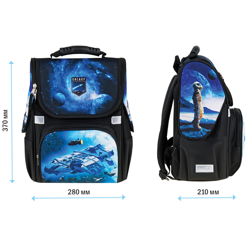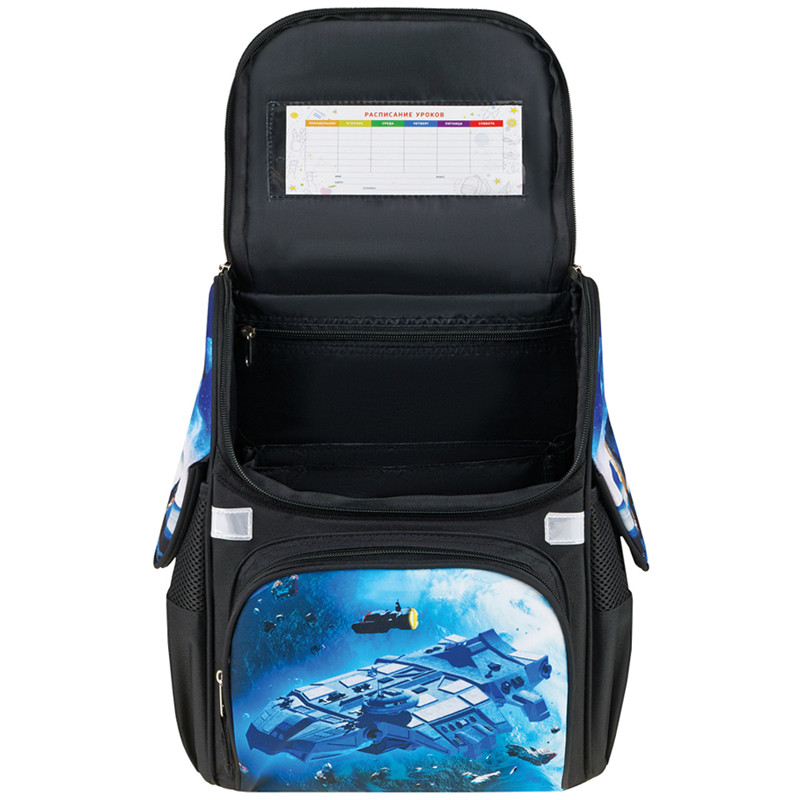Ранец серии ArtSpace Junior с 1 отделением и 3 карманами - практичный, удобный и лёгкий. Он станет надёжным помощником учащихся младших классов. Ранец изготовлен из прочного полиэстера, имеет непромокаемое дно из ПВХ, эргономичную спинку и широкие мягкие лямки. Световозвращающие элементы на передней и боковых частях, а также на лямках ранца делают передвижение ребёнка в тёмное время суток более безопасным. Размер - 370*280*210 мм, объем - 21.7 л, вес - 900 г. Толщина спинки - 5-25 мм. Толщина лямок - 10 мм, ширина лямок - 50 мм. Толщина дна - 5 мм. Возрастная группа - для младших классов. Для мальчиков.