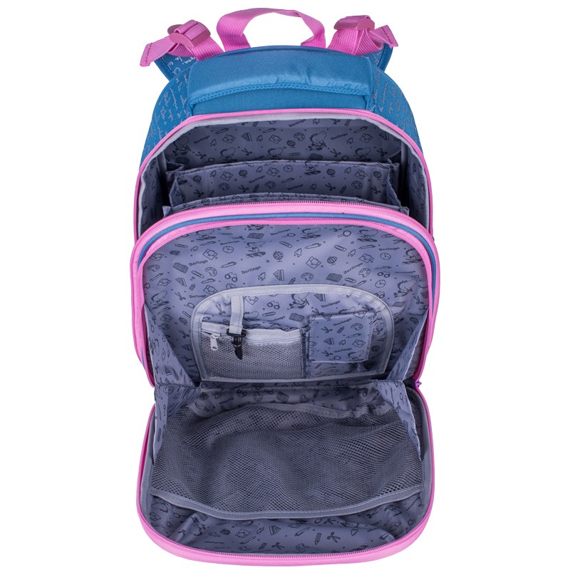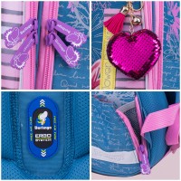 Эргономичный ранец серии Expert для детей младшего и среднего школьного возраста. Выполнен из современного пористого EVA материала с покрытием из водонепроницаемого высококачественного полиэстера. Имеет 2 отделения, боковой расширяющийся карман на молнии, надёжный прочный корпус, эргономичную вентилируемую спинку, укреплённые лямки с возможностью регулировки по росту ребёнка. Внутри переднего отделения - органайзер для письменных принадлежностей, карман для мобильного телефона, карабин для ключей, карман на молнии и отделение размером 24*26 см с сетчатой перегородкой . Основное отделение оснащено двумя разделительными планками, которые позволят аккуратно разместить тетради и книги. Уплотненная мягкая ручка и петля для подвешивания к парте делают ранец очень удобным. Дно выполнено из водонепроницаемого ПВХ и оснащено пластиковыми ножками для защиты от загрязнений и влаги. Светоотражающие элементы на лямках, передней и боковых частях ранца обеспечивают безопасность ребенка в темное время суток. Игрушка-подвеска в подарок. Размер - 370*280*160 мм. Объем - 16.5 л, вес - 950 г. Толщина спинки - 5-25 мм. Толщина дна - 7 мм. Ширина лямок - 55 мм, толщина лямок - 10 мм. Возрастная группа - младших и средних классов. Для девочек.
