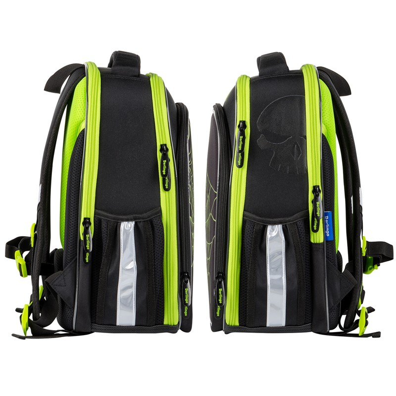 Ранец из серии "Expert Plus". Изготовлен из легкого экологичного ЭВА материала, который не подвержен деформации, не выцветает, легко чистится от загрязнений. Благодаря анатомической вентилируемой спинке, а также регулируемым по длине и высоте лямкам, нагрудному креплению ранец плотно фиксируется на спине ребенка, нагрузка распределяется равномерно, сохраняется правильная осанка. В ранце 2 отделения, 1 отделение у спинки для учебных пособий формата А4+, 2 боковых кармана, внутри предусмотрены разделители для учебных пособий, а также органайзер, которые помогают ребенку поддерживать порядок и аккуратно хранить школьные принадлежности. Дно выполнено из водонепроницаемого ПВХ и оснащено пластиковыми ножками – они защищают от загрязнения. Ранец оснащен плотной ручкой и петлей для подвешивания. Световозвращающие элементы на лямках, передней и боковой частях ранца обеспечивают безопасность в темное время суток. Размер - 370*280*180 мм. Объем - 16 л, вес - 850 г. Толщина спинки - 5-10 мм. Толщина дна - 7 мм. Ширина лямок - 70 мм, толщина лямок - 5 мм. Возрастная группа - младших и средних классов. Для мальчиков.