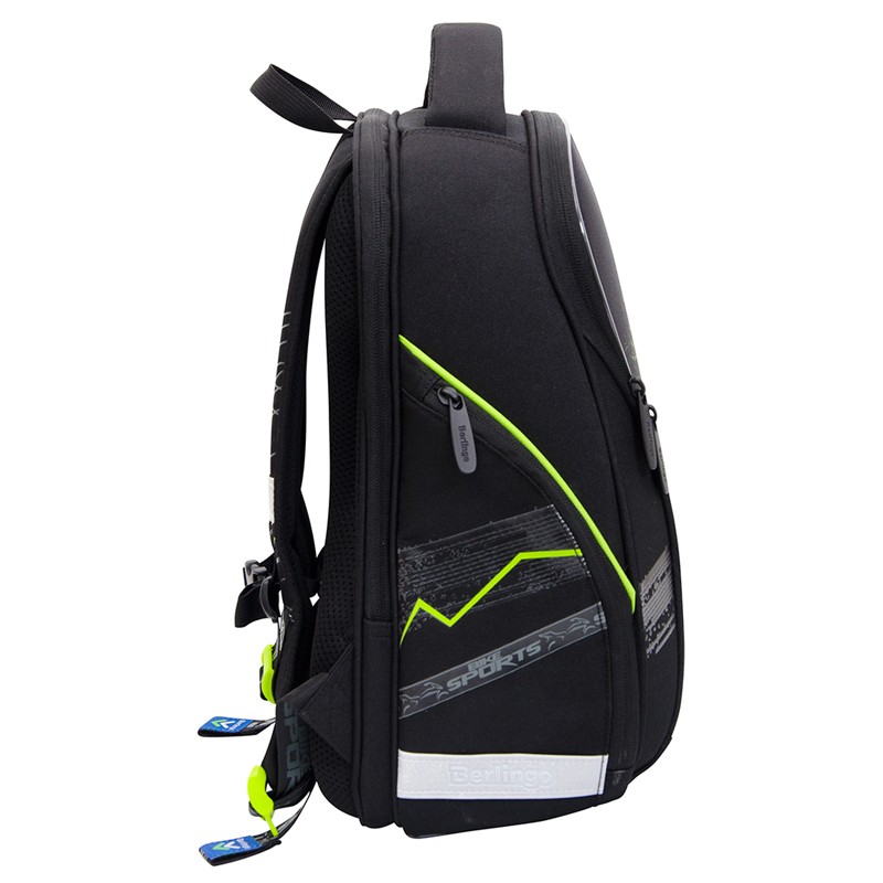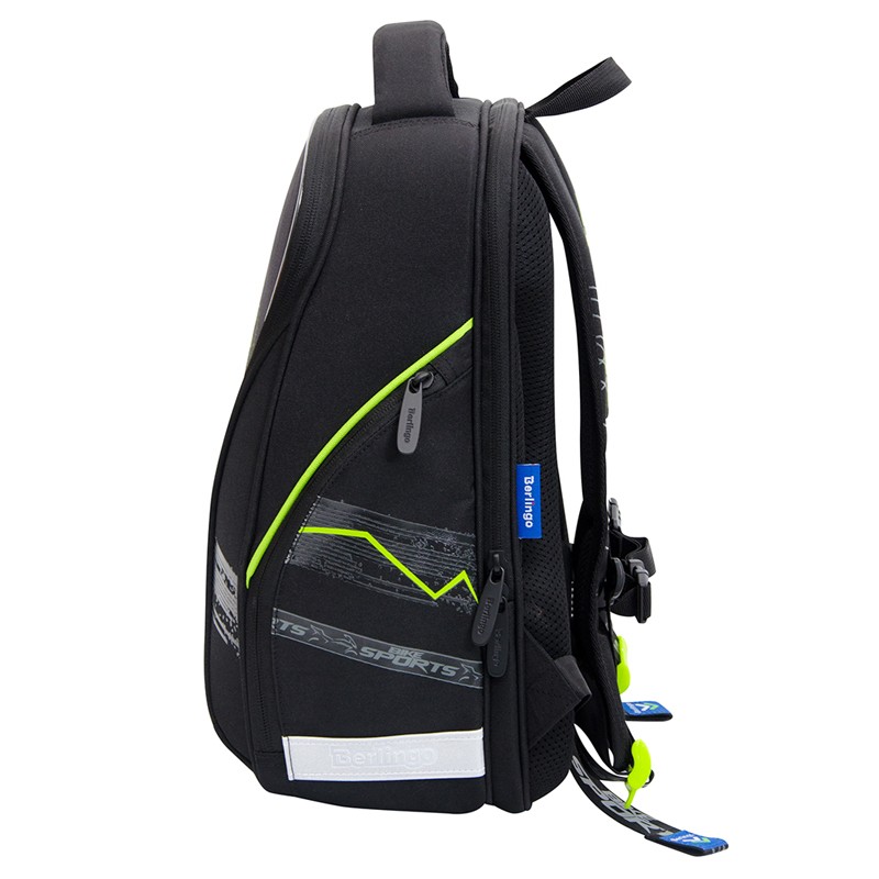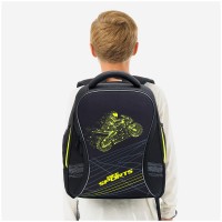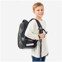 Эргономичный ранец серии "Nova" предназначен для детей младшего и среднего школьного возраста. Он выполнен из легкого экологичного ЭВА материала с покрытием из высокопрочной нейлоновой ткани кордура. За счет особой структуры нити в ней достигнута четырёхкратная стойкость к истиранию по сравнению с простым нейлоном. Кордура обладает водоотталкивающими свойствами и легко чистится. Благодаря анатомической вентилируемой спинке, регулируемым по длине и высоте лямкам и нагрудному креплению ранец плотно фиксируется на спине ребенка, что помогает равномерно распределить нагрузку и сохранить правильную осанку. Ранец имеет 2 отделения, 2 боковых кармана на молнии, внутри предусмотрены разделители для учебных пособий, органайзер для письменных принадлежностей, карман для мобильного телефона, карабин для ключей и именная карточка для подписи. Отделение у спинки предназначено для учебных пособий формата А4+. Уплотненная мягкая ручка и петля для подвешивания к парте делают ранец очень удобным. Дно выполнено из водонепроницаемого ПВХ с пластиковыми ножками. Световозвращающие элементы на лямках, передней и боковых частях ранца обеспечивают безопасность ребенка в темное время суток. Размер - 370*280*180 мм. Объем - 17 л, вес - 930 г. Толщина спинки - 5-20 мм. Толщина дна - 7 мм. Ширина лямок - 70 мм, толщина лямок - 10 мм. Возрастная группа - для младших и средних классов. Для мальчиков.