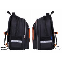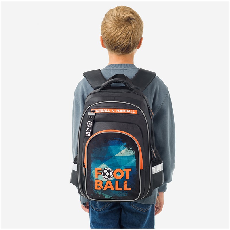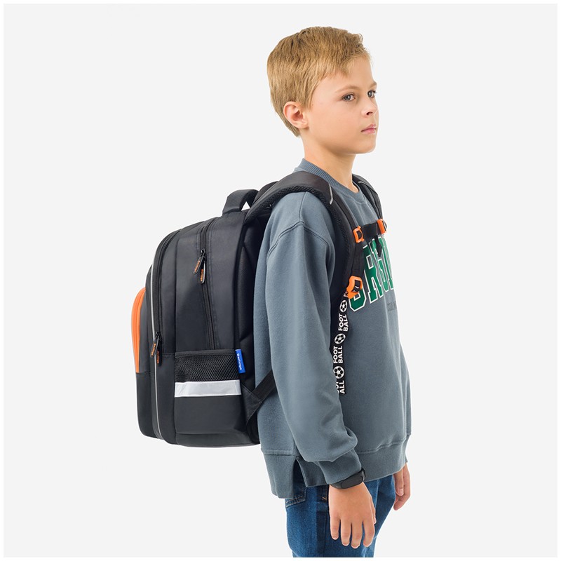 Эргономичный рюкзак предназначен для учеников начальной и средней школы и является отличной альтернативой жестким ранцам. Формованная спинка из экологичного ЭВА материала устойчива к деформации, создана с учетом анатомического строения спины ребенка, имеет вентиляционные каналы для свободной циркуляции воздуха. Плотные лямки с возможностью регулировки и нагрудный фиксатор позволяют равномерно распределить нагрузку на спину ребенка. В рюкзаке предусмотрены 2 отделения, 2 передних кармана, 2 боковых кармана, уплотненное дно с откидной пластиковой планкой. Внутри имеется органайзер и отделение для учебных пособий. Световозвращающие элементы расположены на лямках, спинке и боковых частях ранца. Размер - 400*290*220мм. Объем - 25.5 л, вес - 720 г. Толщина спинки - 15 мм. Толщина лямок - 10 мм. Толщина дна - 8 мм. Возрастная группа - для младших и средних классов. Для мальчиков.