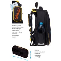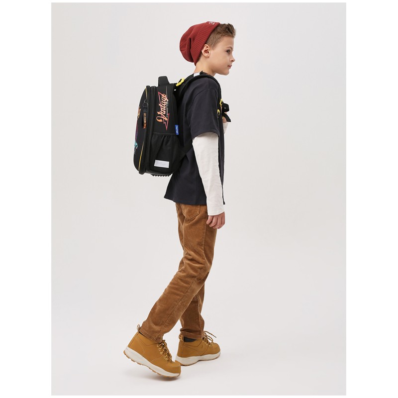 Эргономичный ранец серии Expert для детей младшего и среднего школьного возраста выполнен из экологичного ЭВА материала с покрытием из высокопрочной нейлоновой ткани кордура. За счет особой структуры нити в ней достигнута четырёхкратная стойкость к истиранию по сравнению с простым нейлоном. Кордура обладает водоотталкивающими свойствами и легко чистится. Благодаря анатомической вентилируемой спинке, регулируемым по длине и высоте лямкам, а также нагрудному креплению ранец плотно фиксируется на спине ребенка, что помогает равномерно распределить нагрузку и сохранить правильную осанку. Ранец имеет 2 отделения, 2 боковых кармана на резинке, съемный кошелек на лямке для быстрого доступа к необходимым вещам. Внутри предусмотрены разделители для учебных пособий, органайзер для письменных принадлежностей, карман для мобильного телефона, карабин для ключей и именная карточка для подписи. Уплотненная мягкая ручка и петля для подвешивания к парте делают ранец очень удобным. Дно выполнено из водонепроницаемого материала с пластиковыми ножками для защиты от влаги. Световозвращающие элементы на лямках, передней и боковых частях ранца обеспечивают безопасность ребенка в темное время суток. Подвеска в подарок. Вес ранца менее 1 кг. Размер - 37х28х16см. Объем - 16.5л, вес - 990г. Толщина спинки - 5-25мм. Толщина лямок - 10мм. Толщина дна - 7мм. Возрастная группа - для младших и средних классов. Для мальчиков.