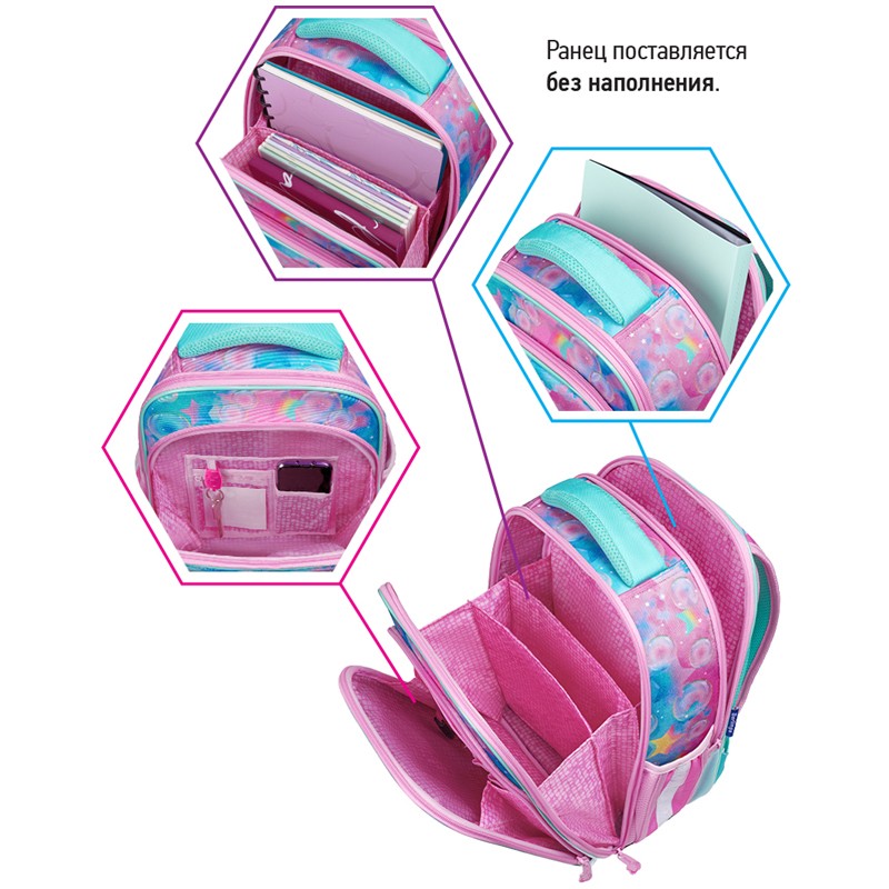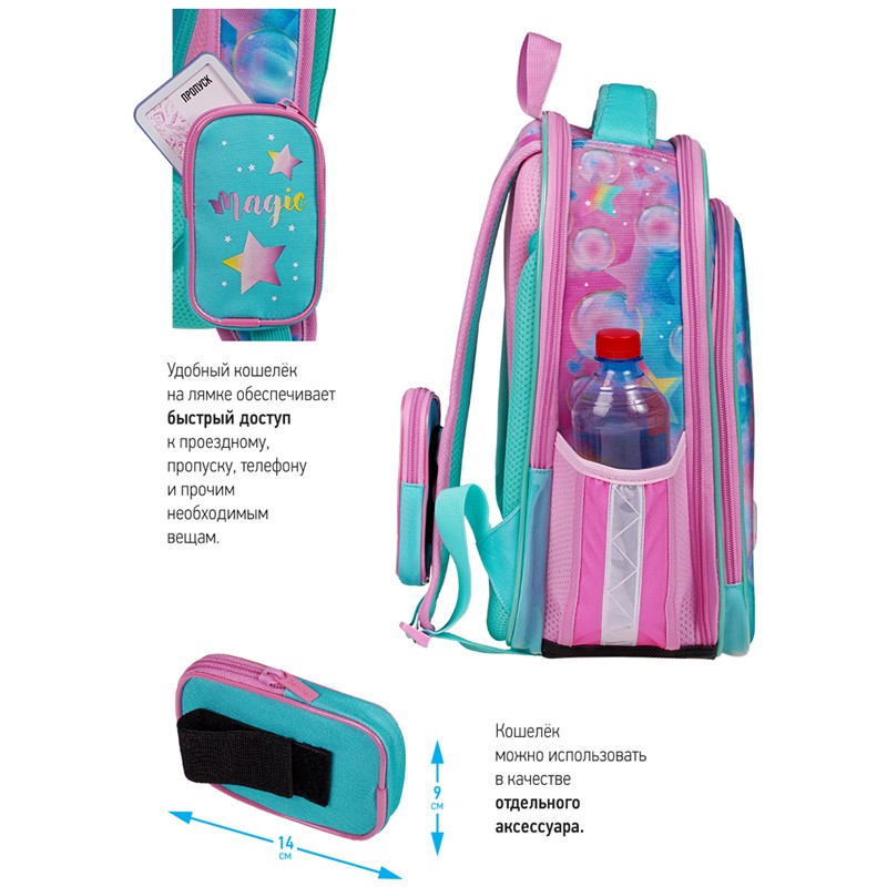 Эргономичный ранец серии Expert Plus для детей младшего и среднего школьного возраставыполнен из легкого экологичного ЭВА материала с покрытием из высокопрочной нейлоновой ткани кордура. За счет особой структуры нити в ней достигнута четырёхкратная стойкость к истиранию по сравнению с простым нейлоном. Кордура обладает водоотталкивающими свойствами и легко чистится. Благодаря анатомической вентилируемой спинке, а также регулируемым по длине лямкам и нагрудному креплению ранец плотно фиксируется на спине ребенка, нагрузка распределяется равномерно, сохраняется правильная осанка. В ранце 3 отделения, одно из которых предназначено для учебных пособий формата А4+, 2 боковых кармана, съемный кошелек на лямке для быстрого доступа к необходимым вещам. Внутри предусмотрены разделители для учебных пособий, а также органайзер, которые помогают ребенку поддерживать порядок и аккуратно хранить школьные принадлежности. Дно выполнено из водонепроницаемого материала и оснащено пластиковыми ножками для защиты содержимого от влаги. Ранец оснащен плотной ручкой и петлей для подвешивания. Световозвращающие элементы на лямках, передней и боковой частях ранца обеспечивают безопасность в темное время суток. Размер - 37х28х18см. Объем - 17л, вес - 990г. Толщина спинки - 5-10мм. Толщина лямок - 5мм. Толщина дна - 7мм. Возрастная группа - для младших и средних классов. Для девочек.
