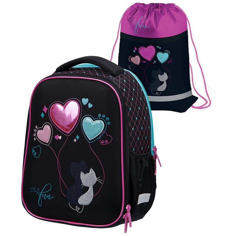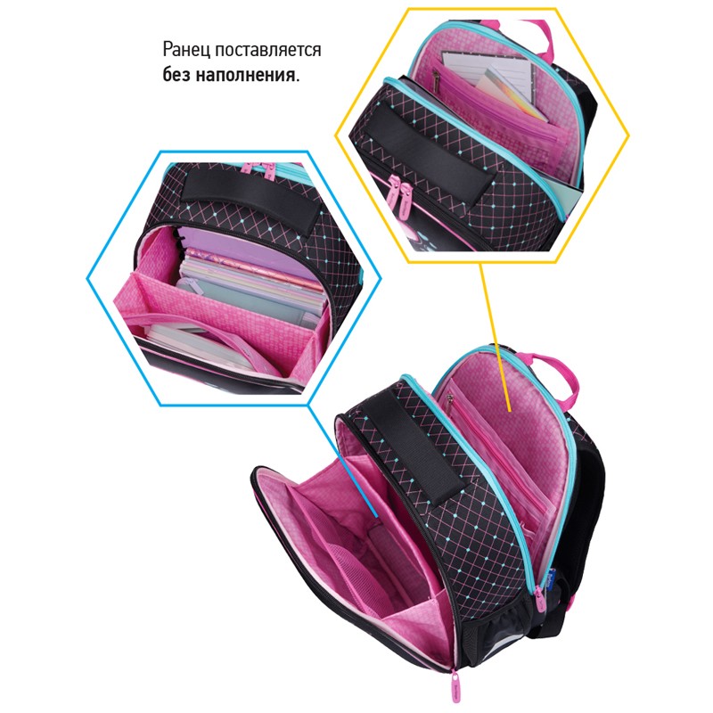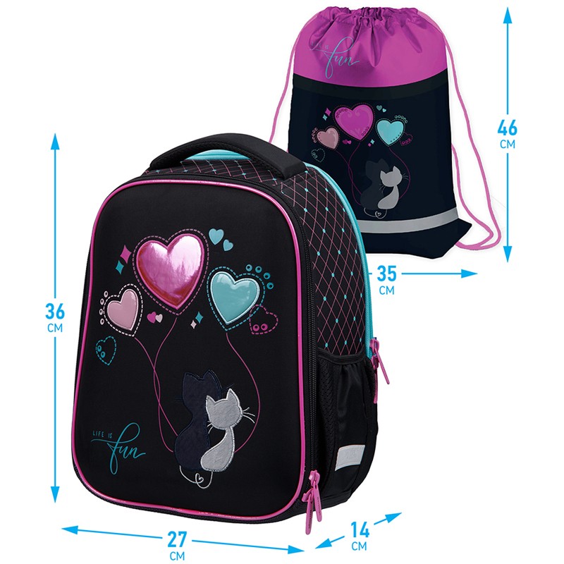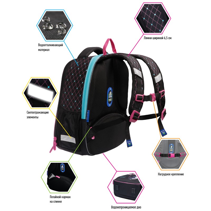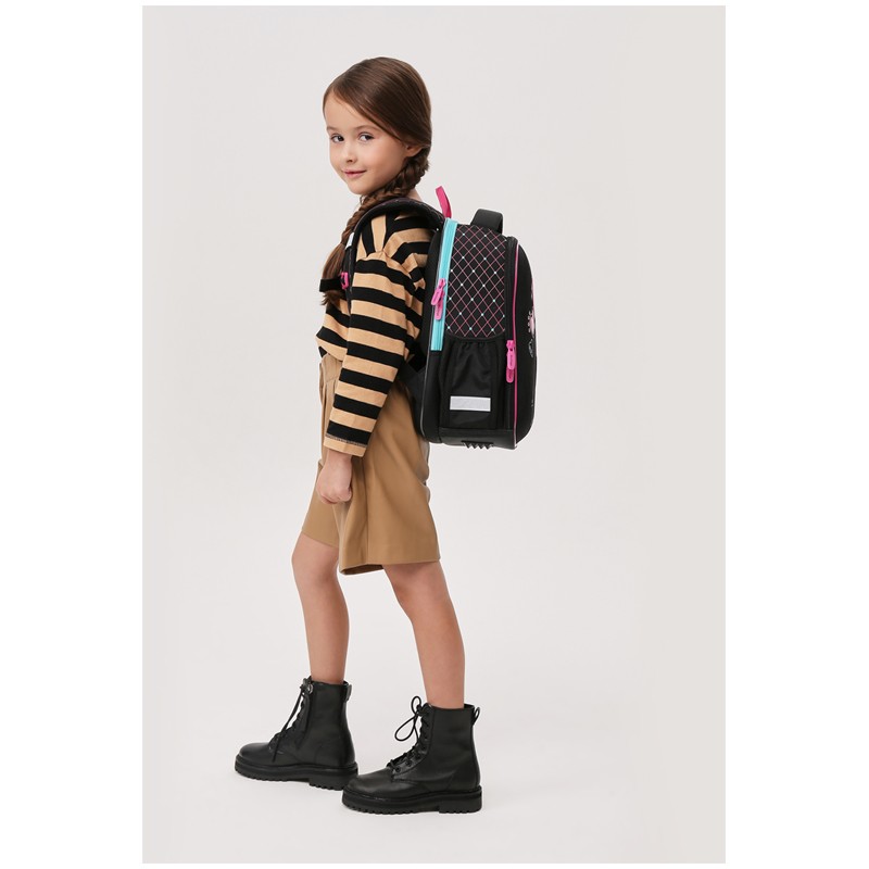 Эргономичный компактный ранец серии Expert Mini для детей младшего и среднего школьного возраста выполнен из экологичного ЭВА материала с покрытием из высокопрочного нейлона. Благодаря анатомической вентилируемой спинке, регулируемым по длине лямкам, а также нагрудному креплению ранец плотно фиксируется на спине ребенка, что помогает равномерно распределить нагрузку и сохранить правильную осанку. Ранец имеет 2 отделения, 2 боковых кармана на резинке, внутри предусмотрены разделители для учебных пособий, 2 внутренних кармана и именная карточка для подписи. Отделение у спинки предназначено для учебных пособий формата А4+. Уплотненная мягкая ручка и петля для подвешивания к парте делают ранец очень удобным. Дно выполнено из водонепроницаемого материала с пластиковыми ножками для защиты от влаги. Световозвращающие элементы на лямках, передней и боковых частях ранца обеспечивают безопасность ребенка в темное время суток. Мешок для обуви 37*46 см с вентилируемой сеточкой и световозвращающей лентой в комплекте. Размер - 36х27х14см. Объем - 13.5л, вес - 900г. Толщина спинки - 5-10мм. Толщина лямок - 5мм. Толщина дна - 7мм. Возрастная группа - для младших и средних классов. Для девочек.