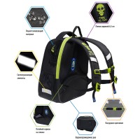 Эргономичный компактный ранец серии Expert Mini для детей младшего и среднего школьного возраста выполнен из экологичного ЭВА материала с покрытием из высокопрочного нейлона. Благодаря анатомической вентилируемой спинке, регулируемым по длине лямкам, а также нагрудному креплению ранец плотно фиксируется на спине ребенка, что помогает равномерно распределить нагрузку и сохранить правильную осанку. Ранец имеет 2 отделения, 2 боковых кармана на резинке, внутри предусмотрены разделители для учебных пособий, 2 внутренних кармана и именная карточка для подписи. Отделение у спинки предназначено для учебных пособий формата А4+. Уплотненная мягкая ручка и петля для подвешивания к парте делают ранец очень удобным. Дно выполнено из водонепроницаемого материала с пластиковыми ножками для защиты от влаги. Световозвращающие элементы на лямках, передней и боковых частях ранца обеспечивают безопасность ребенка в темное время суток. Мешок для обуви 37*46 см с вентилируемой сеточкой и световозвращающей лентой в комплекте. Размер - 36х27х14см. Объем - 13.5л, вес - 900г. Толщина спинки - 5-10мм. Толщина лямок - 5мм. Толщина дна - 7мм. Возрастная группа - для младших и средних классов. Для мальчиков.