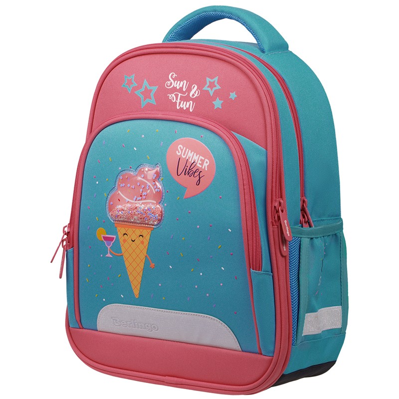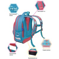 Эргономичный полужесткий ранец серии Flash рассчитан на учеников младшей и средней школы. Передняя часть и спинка ранца жесткие, а боковые панели уплотнены слоем спонжа. Благодаря эргономичной вентилируемой спинке, а также регулируемым по длине лямкам, нагрудному креплению он плотно фиксируется на спине ребенка. В ранце предусмотрены 2 отделения, 1 передний карман на молнии, 2 боковых кармана. Внутри имеются органайзер, дополнительное отделение для учебных пособий и именная карточка. Дно выполнено из водонепроницаемого материала с пластиковыми ножками для защиты от влаги. Ранец оснащен плотной ручкой и петлей для подвешивания. Световозвращающие элементы на передней части, сбоку и на лямках обеспечивают безопасность в темное время суток. Размер - 37х28х15см. Объем - 15.5л, вес - 880г. Толщина спинки - 10мм. Толщина лямок - 8мм. Толщина дна - 8мм. Возрастная группа - для младших и средних классов. Для девочек.
