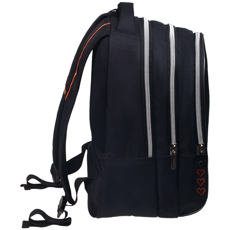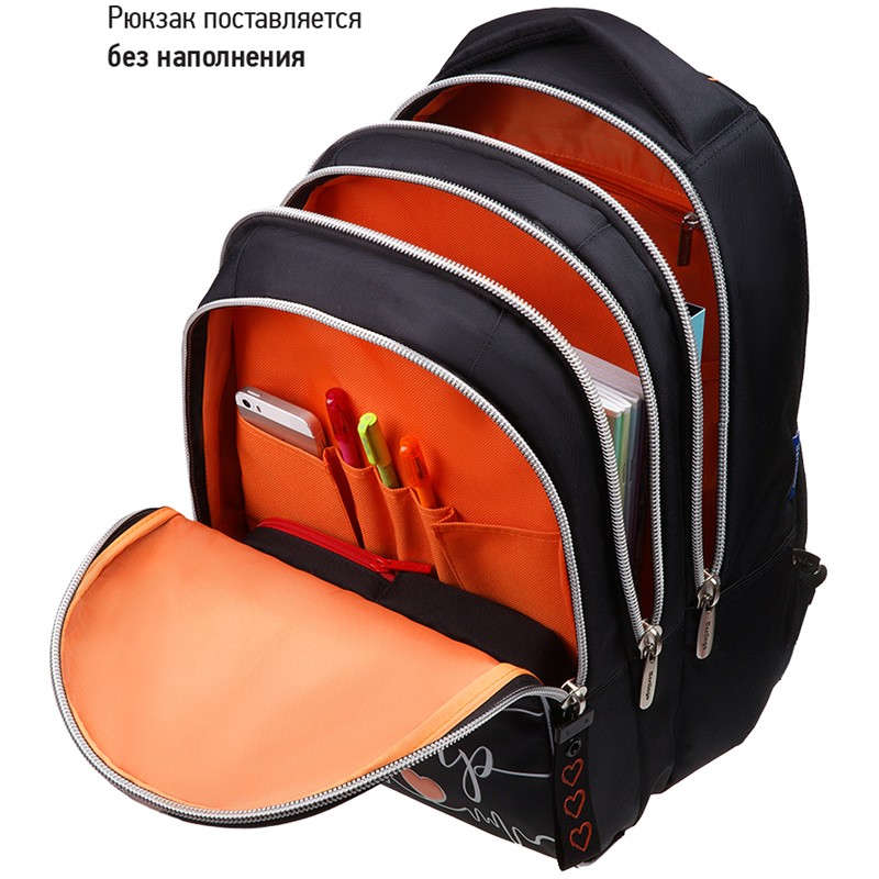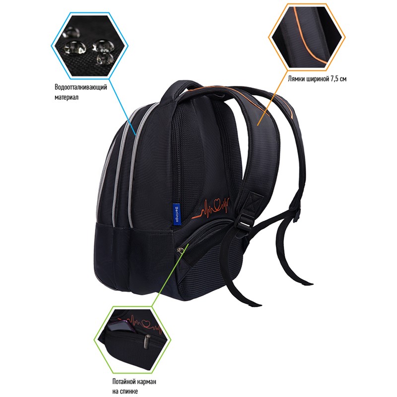 Рюкзак выполнен из прочного нейлона, благодаря чему изделия обладают повышенной износостойкостью. В модели предусмотрены 3 отделения, есть потайной карман на молнии на спинке. Внутри – органайзер, отделение для учебных пособий, карман на молнии. Жесткая эргономичная вентилируемая спинка, широкие регулируемые лямки помогают равномерному распределению нагрузки на позвоночник, а усиленное дно, плотная ручка и петля для подвешивания делают рюкзак максимально удобным. Внутренняя подкладка плотная и устойчивая к разрывам. Световозвращающие элементы обеспечивают безопасность в темное время суток. Размер - 41х27х20см. Объем - 22л, вес - 800г. Толщина спинки - 5-20мм. Толщина лямок - 10мм. Толщина дна - 5мм. Возрастная группа - для средних и старших классов. Для девочек.