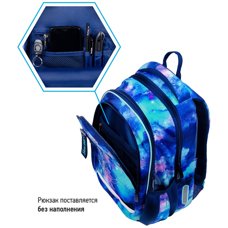 Эргономичный рюкзак серии Cute предназначен для детей младшего и среднего школьного возраста и является отличной альтернативой жестким ранцам. Формованная спинка из экологичного ЭВА материала устойчива к деформации, создана с учетом анатомического строения спины ребенка, имеет вентиляционные каналы для свободной циркуляции воздуха. Плотные лямки с возможностью регулировки и нагрудный фиксатор позволяют равномерно распределить нагрузку на спину ребенка. В рюкзаке предусмотрены 3 отделения, 1 передний карман на молнии, 2 боковых кармана. Внутри имеется органайзер и съемный карабин для ключей. Световозвращающие элементы помогают обеспечить безопасность ребенка в темное время суток. Размер - 38х28х14см. Объем - 15л, вес - 670г. Толщина спинки - 15мм. Толщина лямок - 7мм. Толщина дна - 5мм. Возрастная группа - для младших и средних классов. Для девочек.