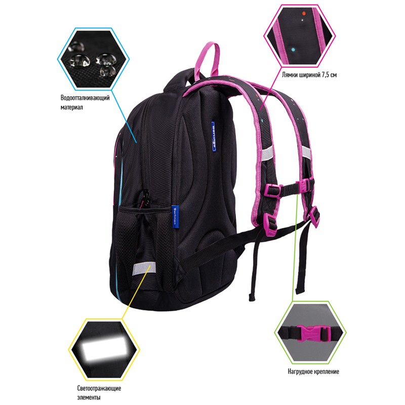 Эргономичный рюкзак серии Bliss предназначен для детей младшего и среднего школьного возраста и является отличной альтернативой жестким ранцам. Формованная спинка из экологичного ЭВА материала устойчива к деформации, создана с учетом анатомического строения спины ребенка, имеет вентиляционные каналы для свободной циркуляции воздуха. Плотные лямки с возможностью регулировки и нагрудный фиксатор позволяют равномерно распределить нагрузку на спину ребенка. В рюкзаке предусмотрены 3 отделения, 2 боковых кармана. Внутри имеется органайзер и съемный карабин для ключей. Световозвращающие элементы помогают обеспечить безопасность ребенка в темное время суток. Размер - 40х29х19см. Объем - 22л, вес - 630г. Толщина спинки - 15мм. Толщина лямок - 7мм. Толщина дна - 5мм. Возрастная группа - для младших и средних классов. Для девочек.