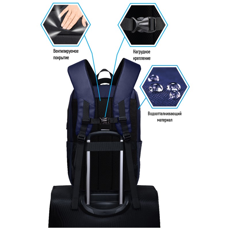 Городской рюкзак серии City – строгий, лаконичный и универсальный, отличается стильным оформлением и функциональностью. В модели предусмотрены USB-разъем, несколько отделений, удобные карманы, отделение для ноутбука, а также лента для крепления к чемодану, что является значительным преимуществом во время поездок. Материал рюкзака – водонепроницаемый полиэстер со специальным покрытием. Эргономичная спинка и широкие лямки позволят равномерно распределить нагрузку на позвоночник. Внутренний органайзер и дополнительные карманы помогают поддерживать порядок и обеспечивает бережное хранение необходимых документов. Размер - 47х30х20см. Объем - 28л, вес - 830г. Толщина спинки - 10мм. Толщина лямок - 10мм. Толщина дна - 5мм. Возрастная группа - для средних и старших классов. Для мальчиков.