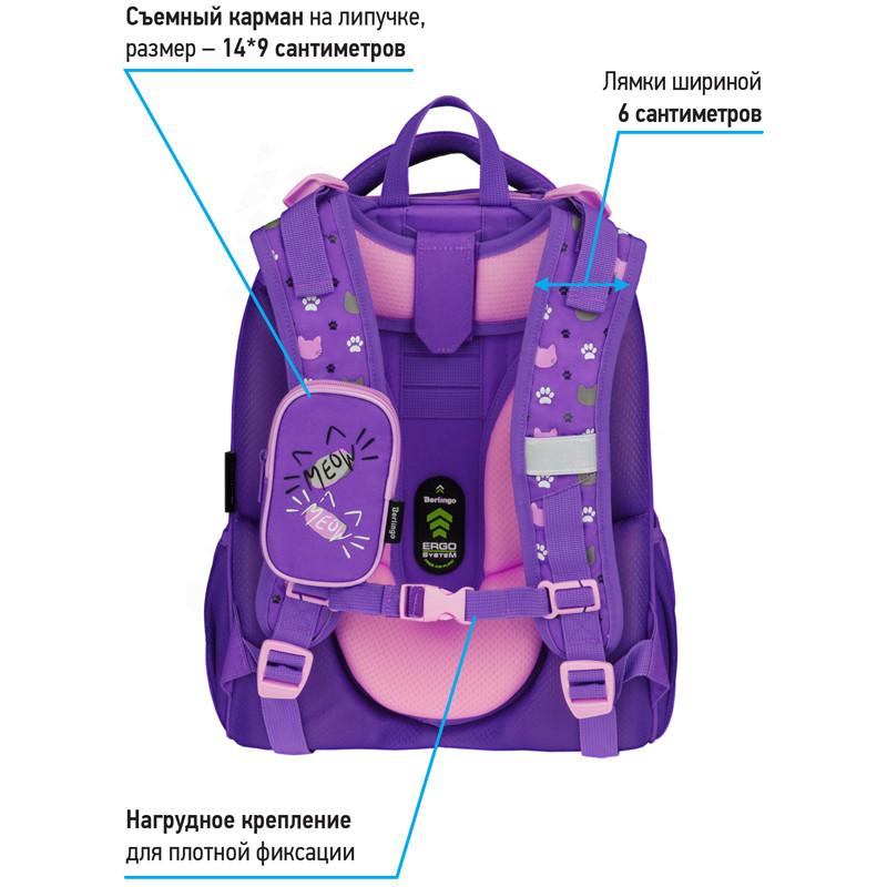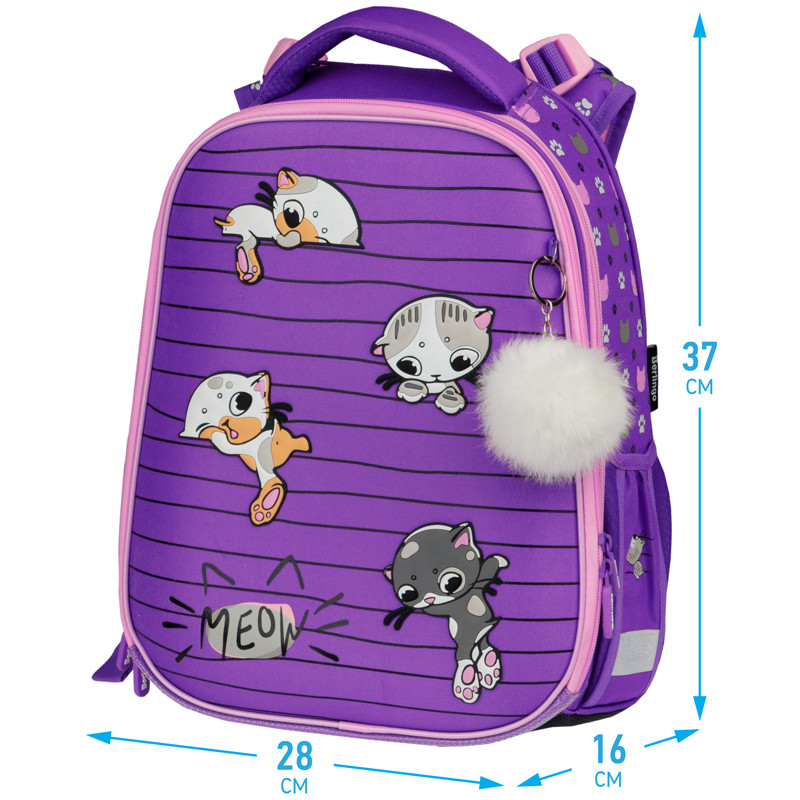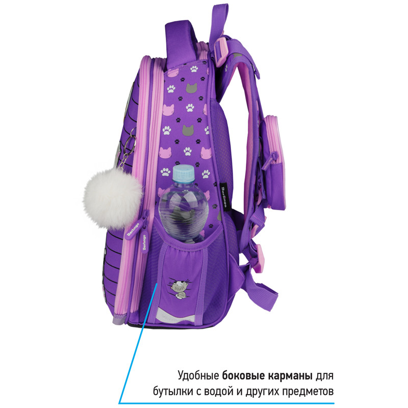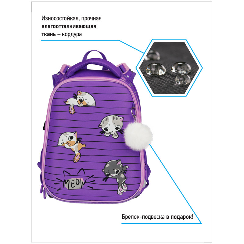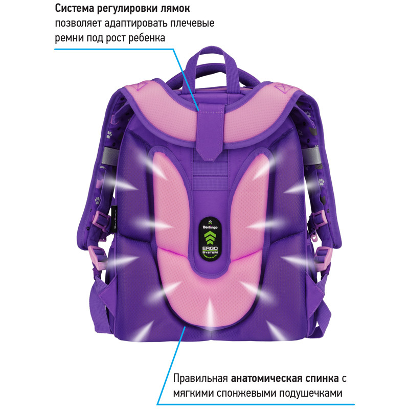 Эргономичный ранец серии Expert Max для детей младшего и среднего школьного возраста выполнен из экологичного ЭВА материала с покрытием из высокопрочной нейлоновой ткани кордура. За счет особой структуры нити в ней достигнута четырёхкратная стойкость к истиранию по сравнению с простым нейлоном. Кордура обладает водоотталкивающими свойствами и легко чистится. Благодаря анатомической вентилируемой спинке, регулируемым по длине и высоте лямкам, а также нагрудному креплению ранец плотно фиксируется на спине ребенка, что помогает равномерно распределить нагрузку и сохранить правильную осанку. Ранец имеет 2 отделения, 2 боковых кармана на резинке, съемный кошелек на лямке для быстрого доступа к необходимым вещам. Внутри предусмотрены разделители для учебных пособий, органайзер для письменных принадлежностей, карман для мобильного телефона, карабин для ключей и именная карточка для подписи. Уплотненная мягкая ручка и петля для подвешивания к парте делают ранец очень удобным. Дно выполнено из водонепроницаемого материала с пластиковыми ножками для защиты от влаги. Световозвращающие элементы на лямках, передней и боковых частях ранца обеспечивают безопасность ребенка в темное время суток. Особенностью данной модели является наличие дождевика, расположенного в специальном кармашке в вехней части ранца. Дождевик оснащен светоотражающими элементами. Подвеска в подарок. Размер - 370*280*160 мм. Объем - 16.5 л, вес - 1000 г. Толщина спинки - 5-25 мм. Толщина дна - 7 мм. Ширина лямок - 65 мм, толщина лямок - 10 мм. Возрастная группа - младших и средних классов. Для девочек.