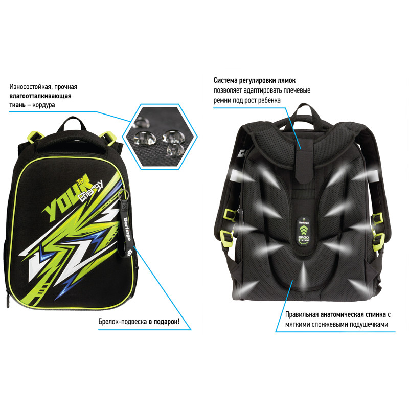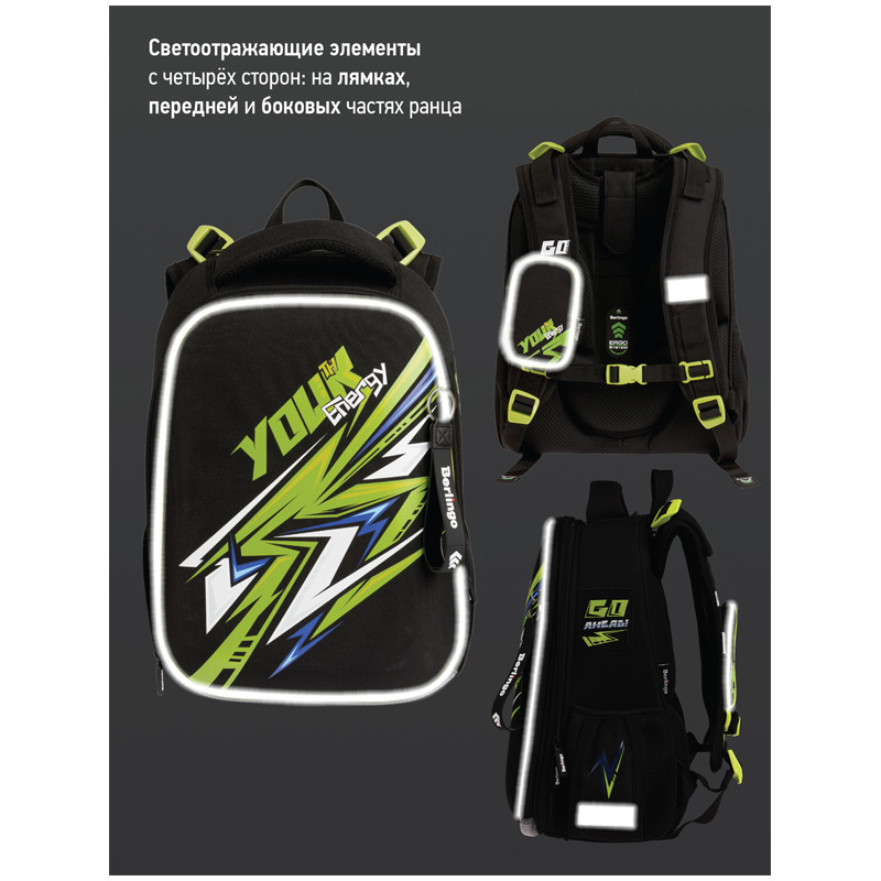 Эргономичный ранец для мальчика Berlingo серии Expert Max Energy размером 37*28*16 см подходит для детей младшего и среднего школьного возраста. Модель выполнена из экологичного ЭВА-материала с покрытием из высокопрочной нейлоновой ткани кордура, которая обладает водоотталкивающими свойствами и легко чистится.