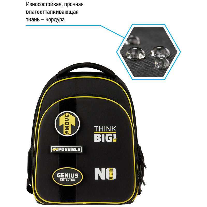 Эргономичный ранец для мальчика Berlingo серии Expert Plus Think big размером 38*29*15 см подходит для детей младшего и среднего школьного возраста. Модель выполнена из легкого экологичного ЭВА-материала с покрытием из высокопрочной нейлоновой ткани кордура, которая обладает водоотталкивающими свойствами и легко чистится.