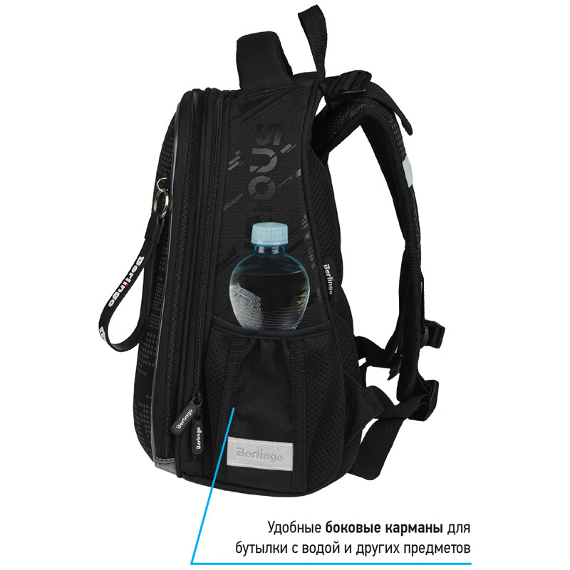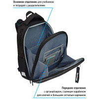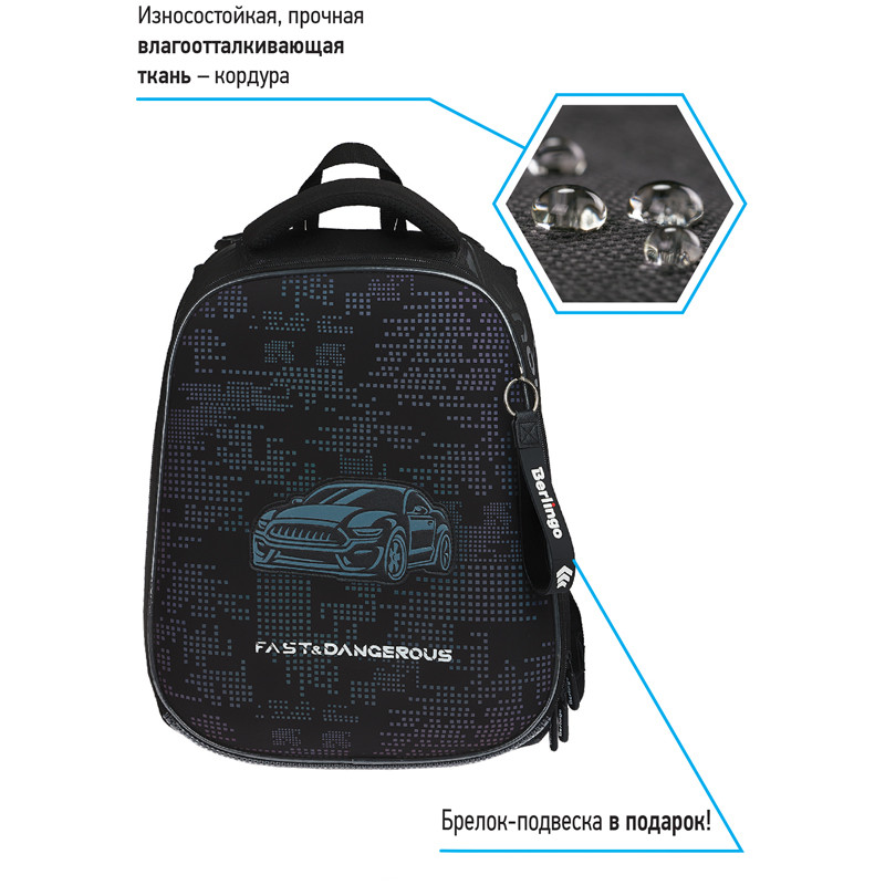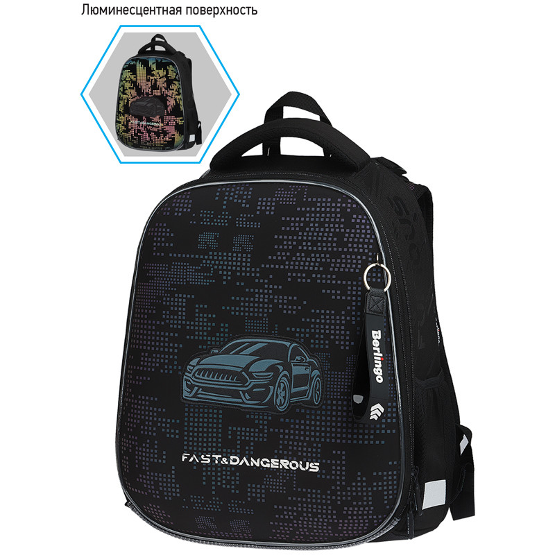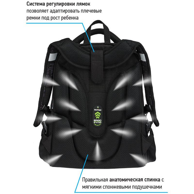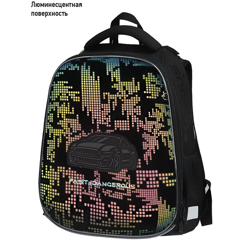 Эргономичный ранец серии Expert NEO для детей младшего и среднего школьного возраста. Отличительная особенность этой серии - передняя панель и лямки выполнены из люминесцентного материала с голографическим эффектом при свете в ночное время. Ранец выполнен из экологичного ЭВА материала. Благодаря анатомической вентилируемой спинке, регулируемым по длине и высоте лямкам, а также нагрудному креплению ранец плотно фиксируется на спине ребенка, что помогает равномерно распределить нагрузку и сохранить правильную осанку. Ранец имеет 2 отделения, 2 боковых кармана на резинке. Внутри предусмотрены разделители для учебных пособий, органайзер для письменных принадлежностей, карман для мобильного телефона, карабин для ключей и именная карточка для подписи. Уплотненная мягкая ручка и петля для подвешивания к парте делают ранец очень удобным. Дно выполнено из водонепроницаемого материала с пластиковыми ножками для защиты от влаги. Световозвращающие элементы на лямках, передней и боковых частях ранца обеспечивают безопасность ребенка в темное время суток. Подвеска в подарок. Размер - 370*280*160 мм. Объем - 16.5 л, вес - 1000 г. Толщина спинки - 5-25 мм. Толщина дна - 7 мм. Ширина лямок - 60 мм, толщина лямок - 10 мм. Возрастная группа - младших и средних классов. Для мальчиков.