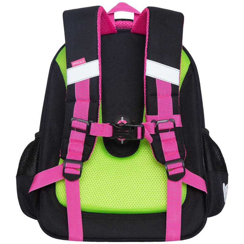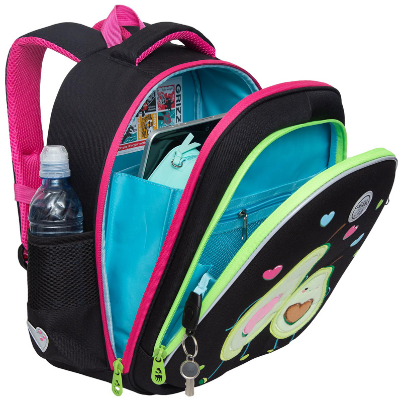 Школьный рюкзак GRIZZLY формованный (хорошо держащий форму), с двумя отделениями; тремя отделами в основном отделении, внутренними карманами для ручек, телефона, мелочей и тетрадок и держателем для ключей в переднем отделении; укрепленными лямками и спиной (лямки регулируются по высоте); с ручкой для переноски. Материал изделия - полиэстер. Размер - 280*360*200 мм, объем - 12 л. Вес - 990 г. Толщина спинки - 15 мм. Толщина лямок - 20 мм. Ширина лямок - 70 мм. Толщина дна - 10 мм.