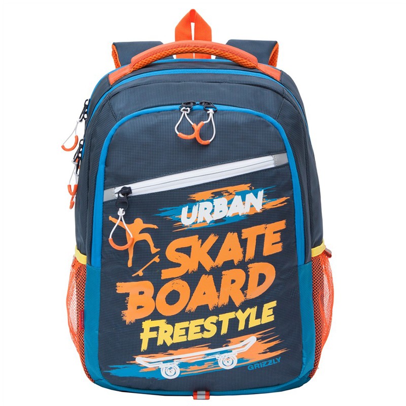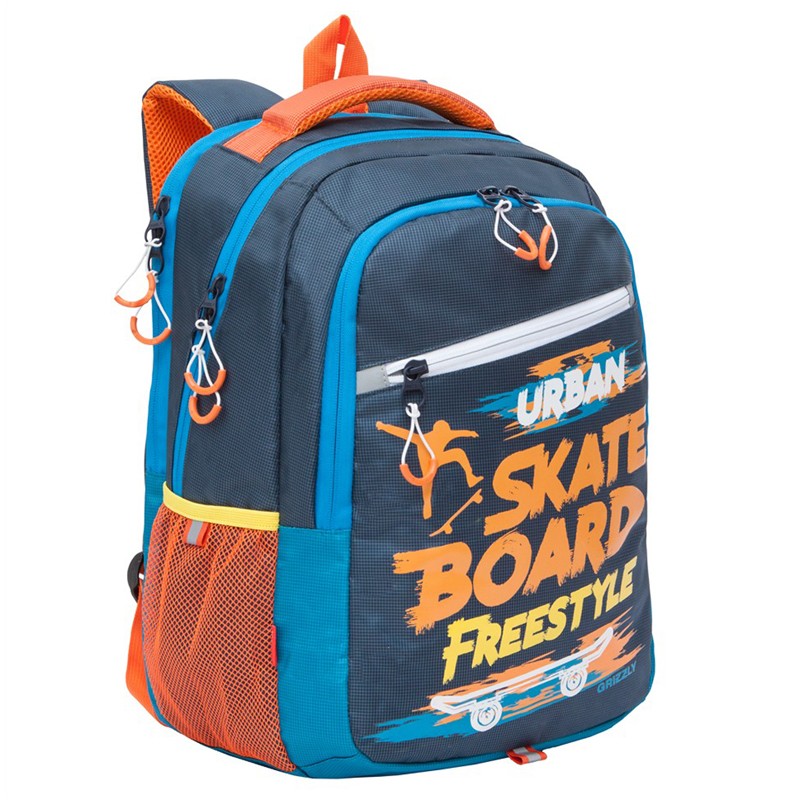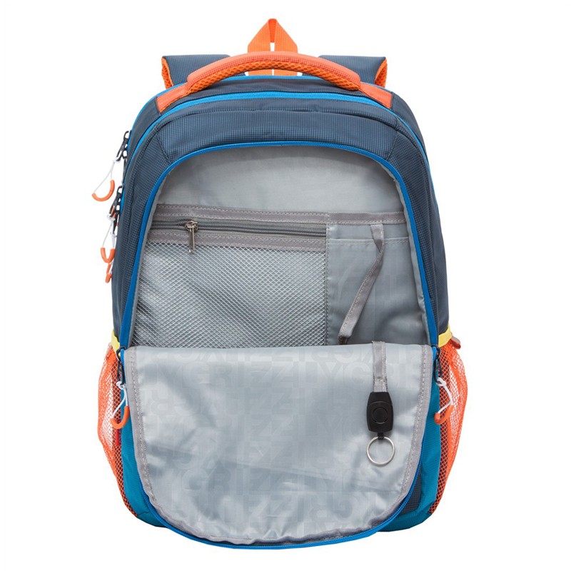 Рюкзак молодежный, три отделения, карман на молнии на передней стенке, боковые карманы из сетки, внутренний держатель для ключей - фастекс, внутренний составной пенал-органайзер, анатомическая спинка, дополнительная ручка-петля, дополнительная укрепленная ручка, нагрудная стяжка-фиксатор, укрепленные лямки. Для мальчиков. Возрастная группа - для старших классов. Материал изделия - полиэстер. Размер - 310*420*220 мм, объем - 20 л. Вес - 771 г. Толщина спинки - 10 мм. Толщина лямок - 5 мм. Толщина дна - 10 мм.
