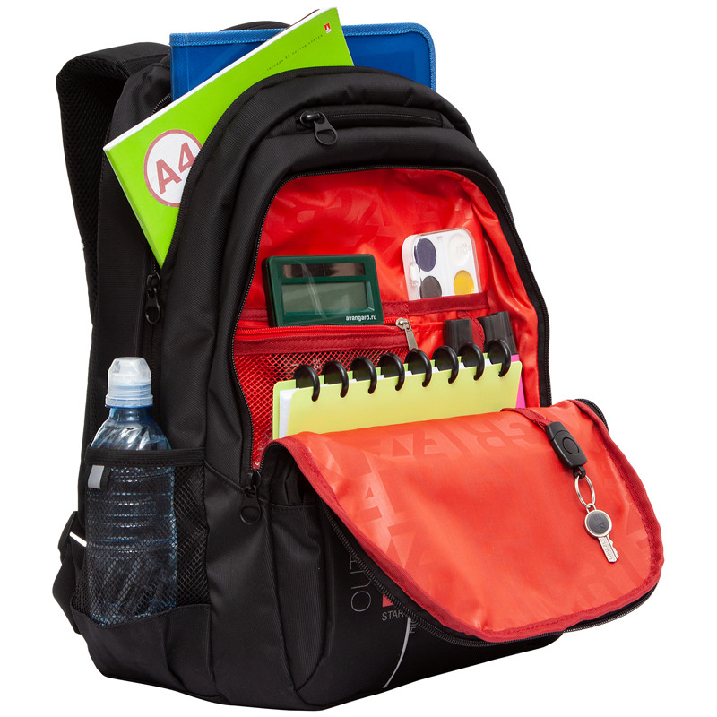 Рюкзак, два отделения, объемный карман на молнии на передней стенке, боковые карманы из сетки, внутренний карман для электронных устройств, внутренний составной пенал-органайзер, внутренний держатель для ключей - фастекс, жесткая анатомическая спинка, карман быстрого доступа в верхней части рюкзака, дополнительная ручка-петля, фастекс со свистком на нагрудной стяжке, укрепленные лямки, укрепленная ручка, накат выполен светоотражающими красками, помещается А4, светоотражающие элементы с четырех сторон. Материал изделия - полиэстер. Размер - 320*450*230 мм, объем - 20.5 л. Вес - 828 г. Толщина спинки - 12 мм. Толщина лямок - 10 мм. Толщина дна - 5 мм.